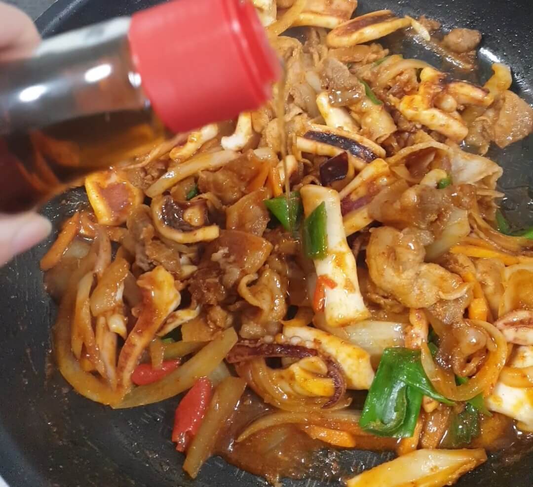 오징어를 넣고 볶아주세요.