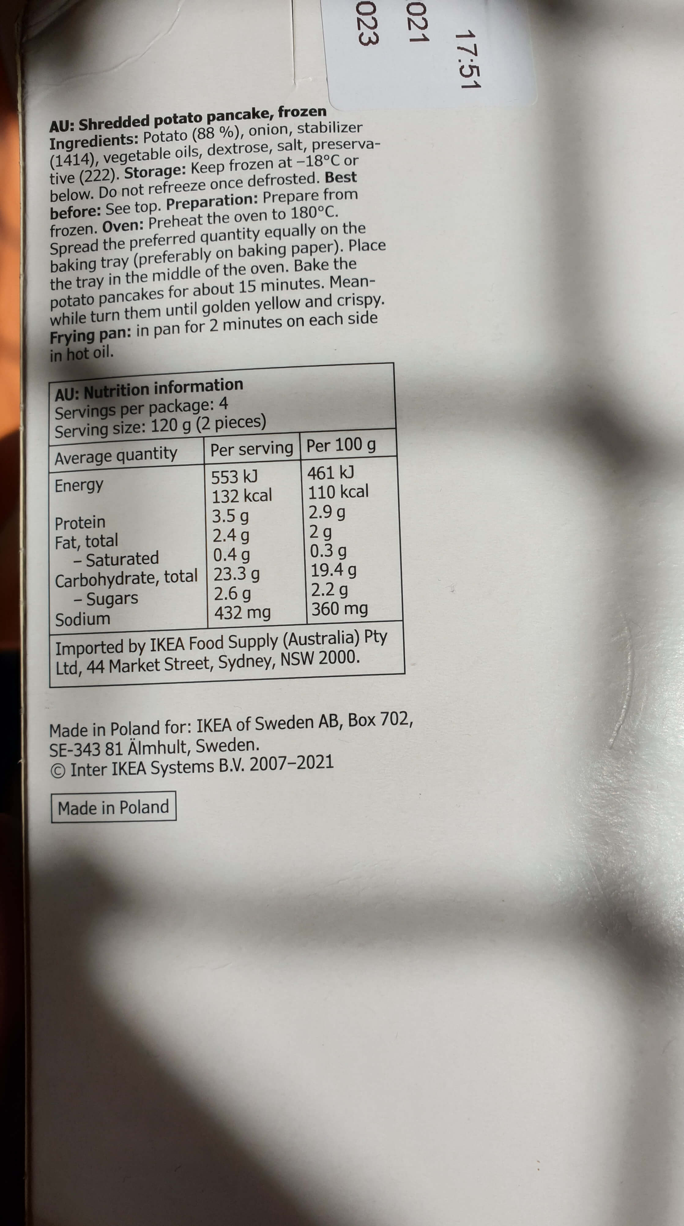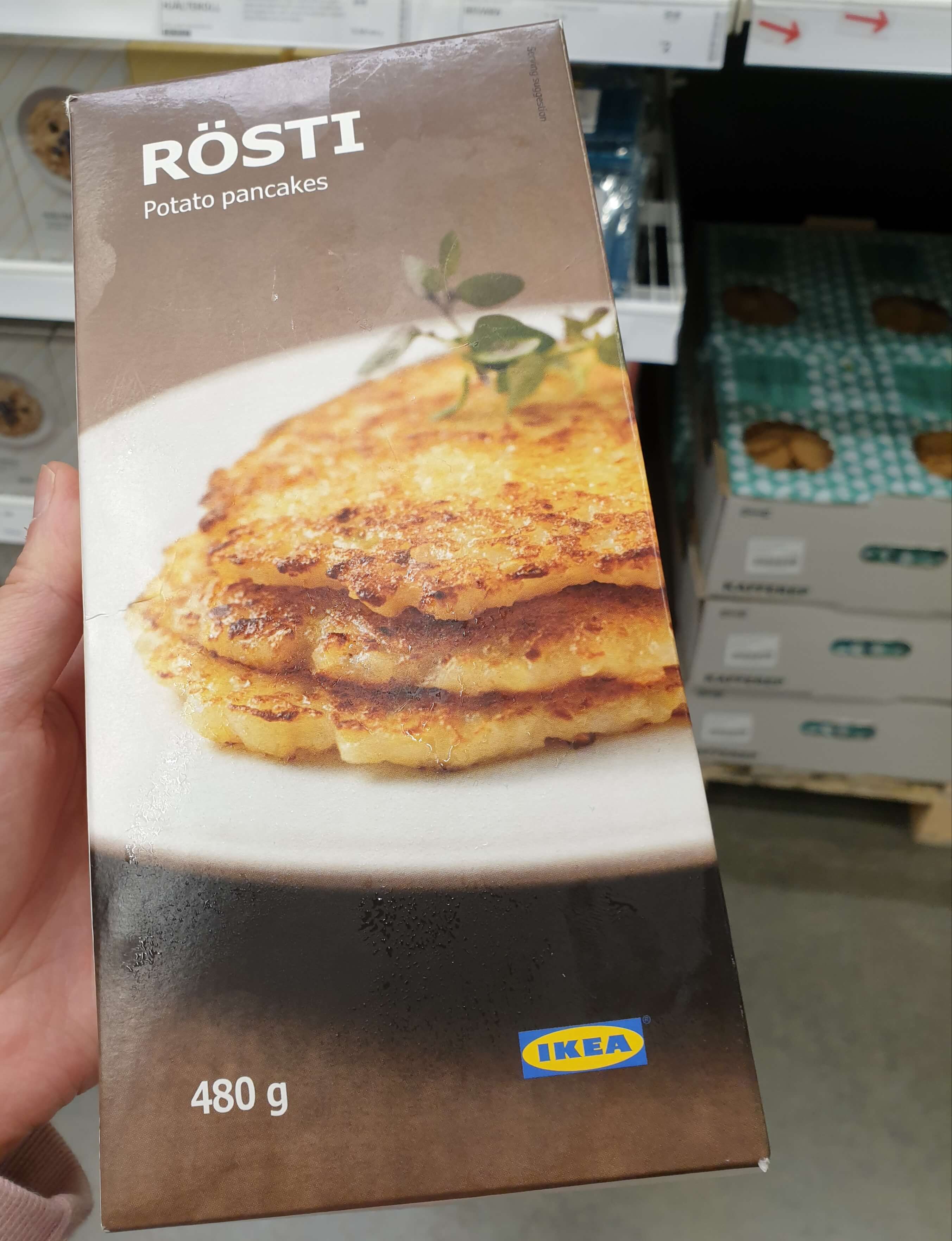 이케아에 가구 보러 갔다가 감자 팬케이크를 사 왔다. ㅎㅎ