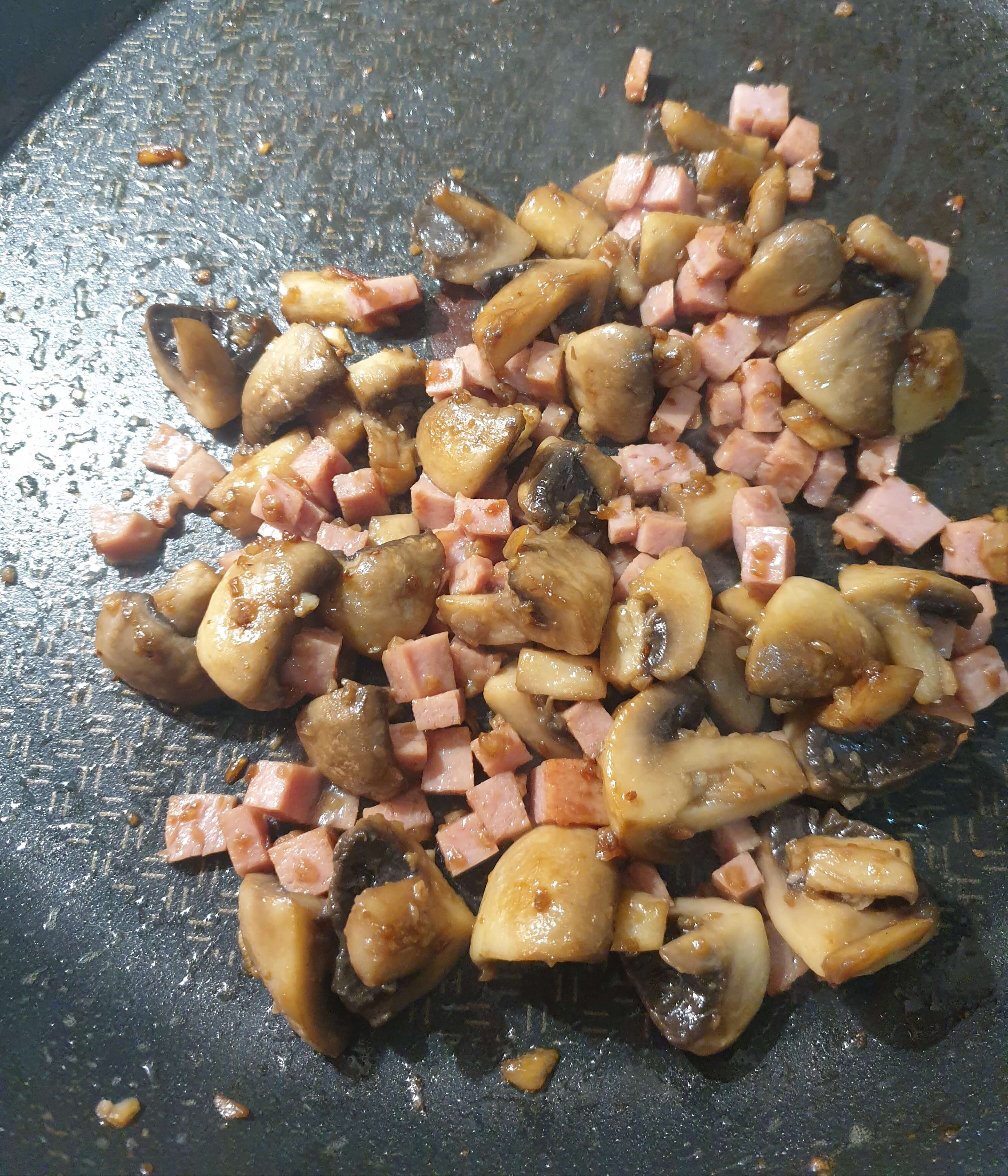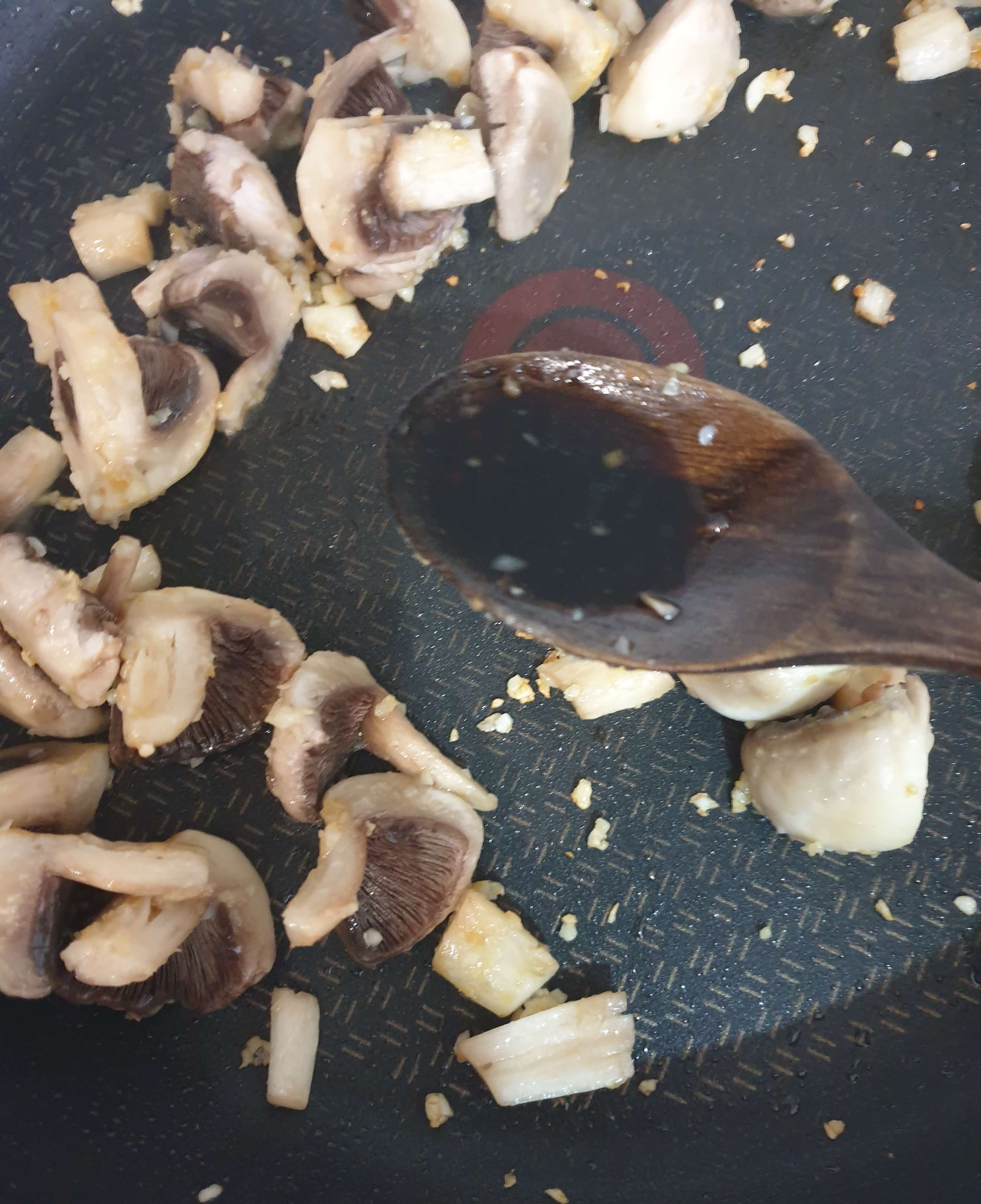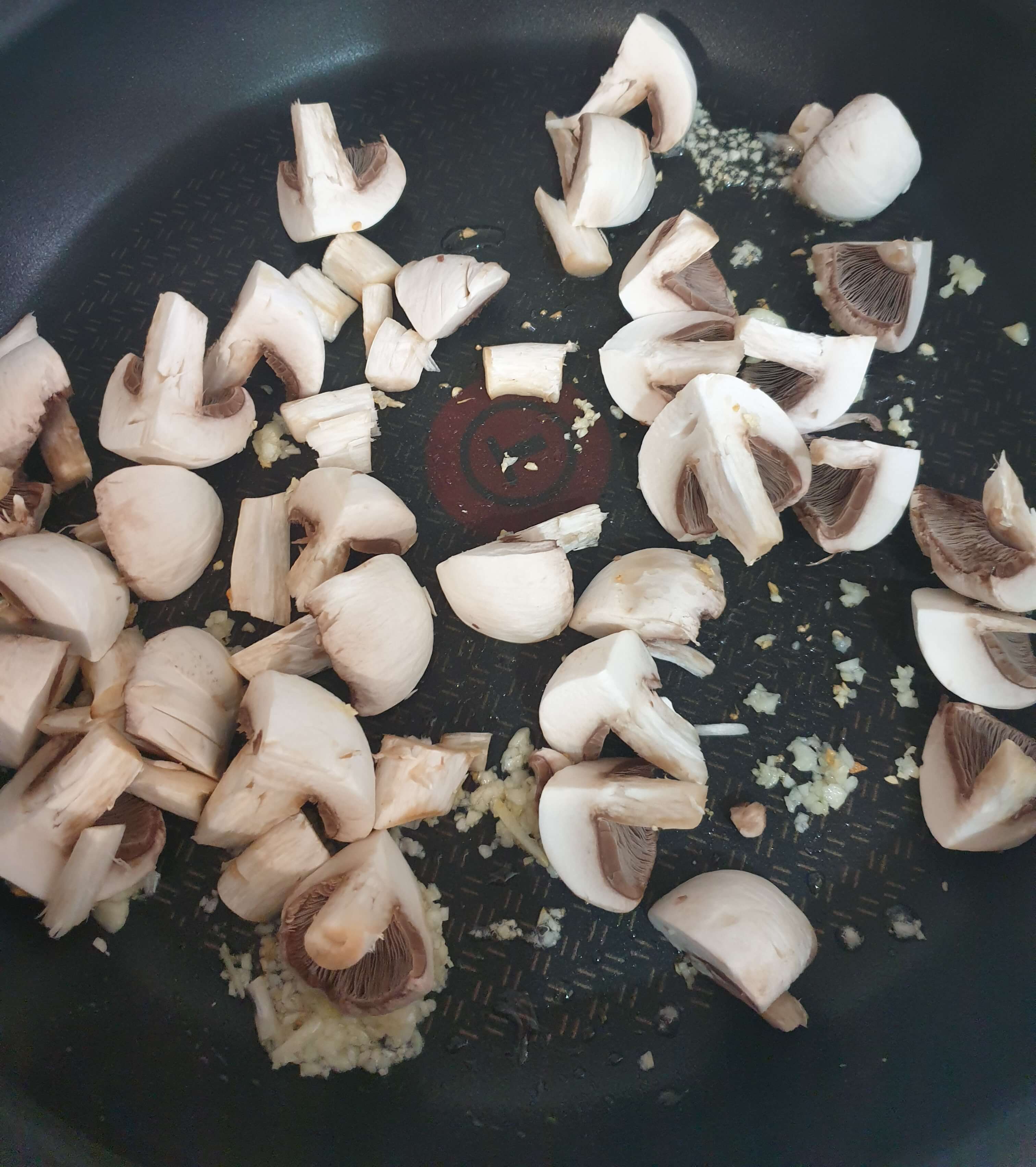 마늘, 버터, 양송이 버섯을 잘 볶은 후