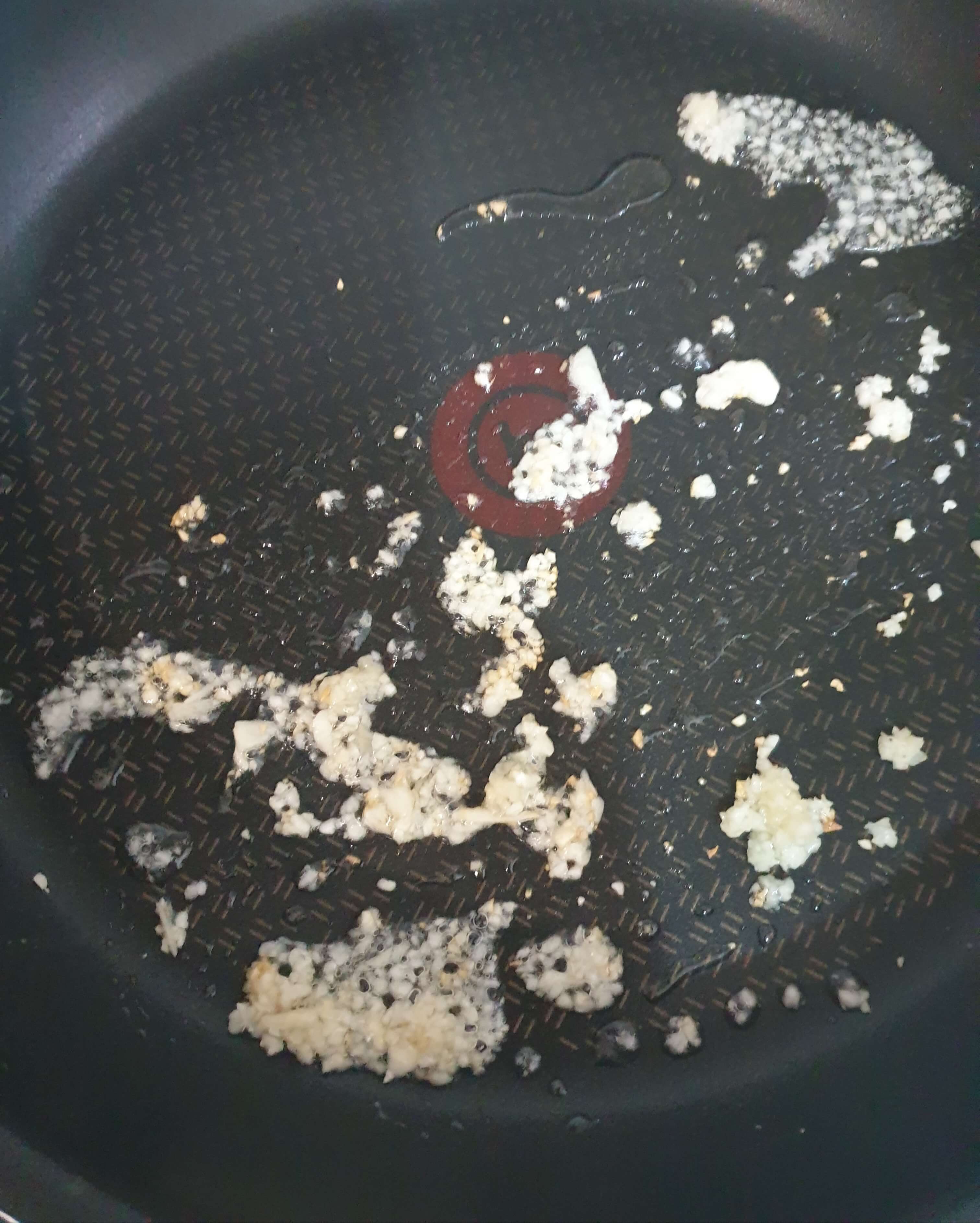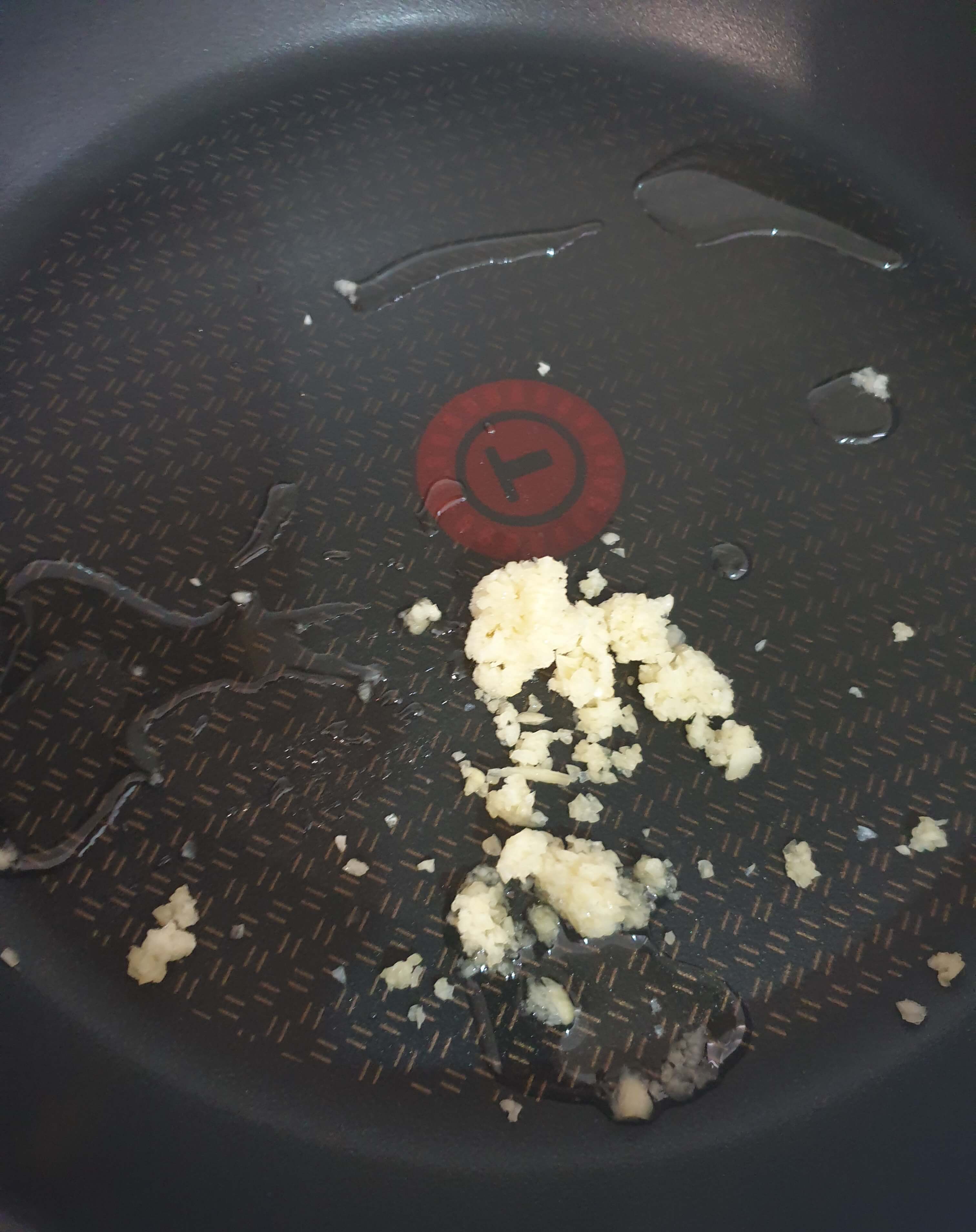 중 약불에서 다진 마늘 1큰술을 볶아 주세요.
