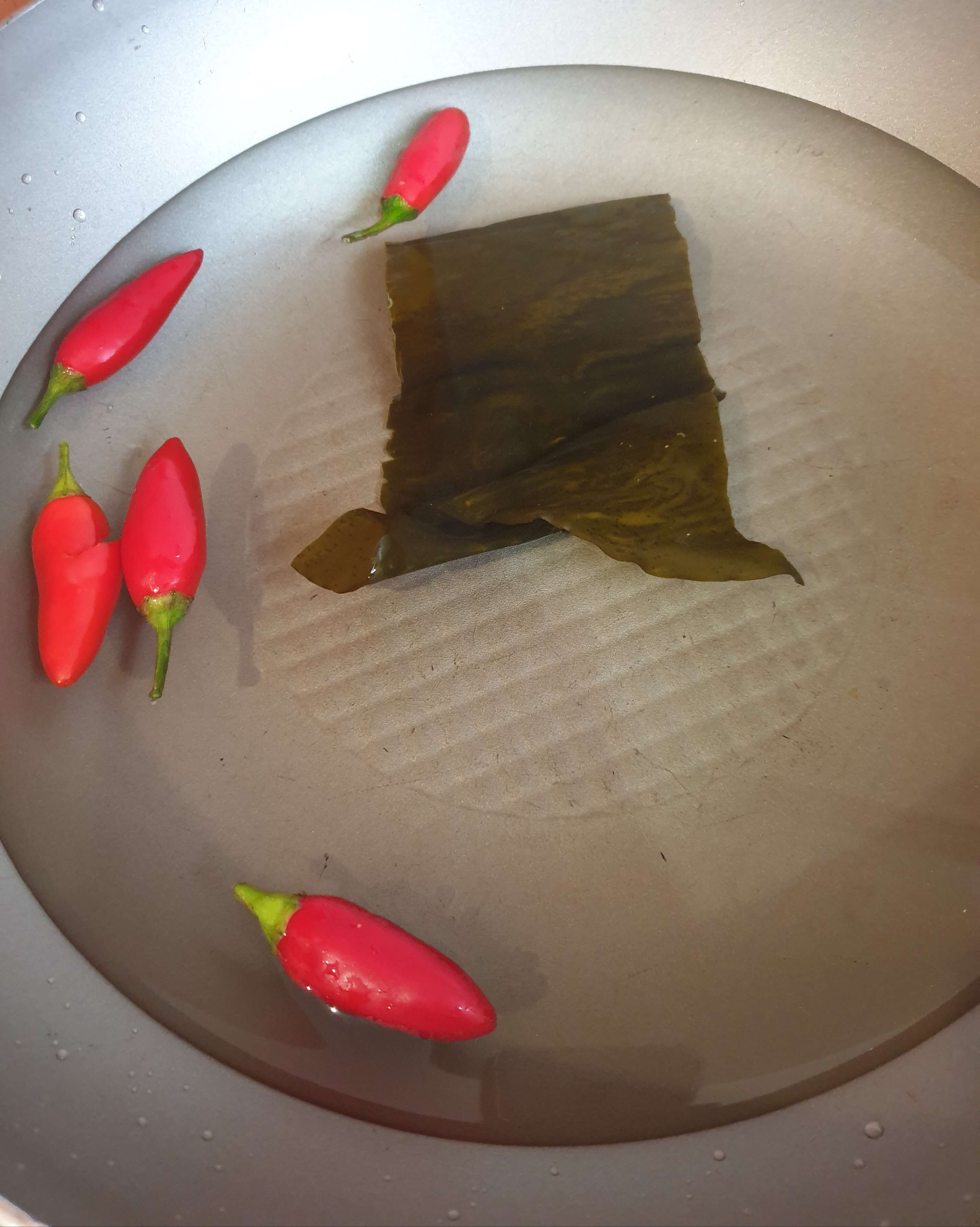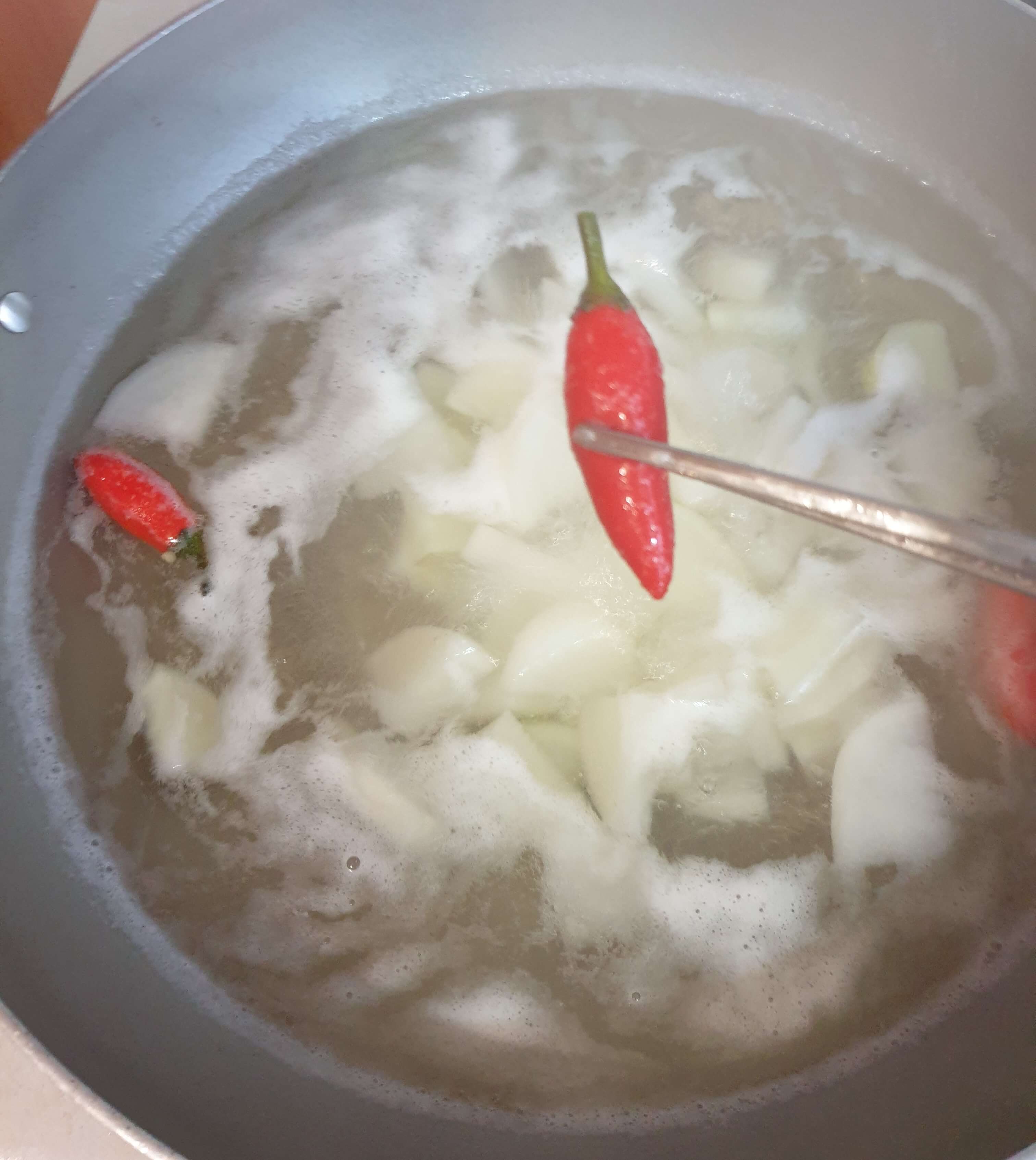5분이 더 지나면 베트남 고추도 건져 주세요.