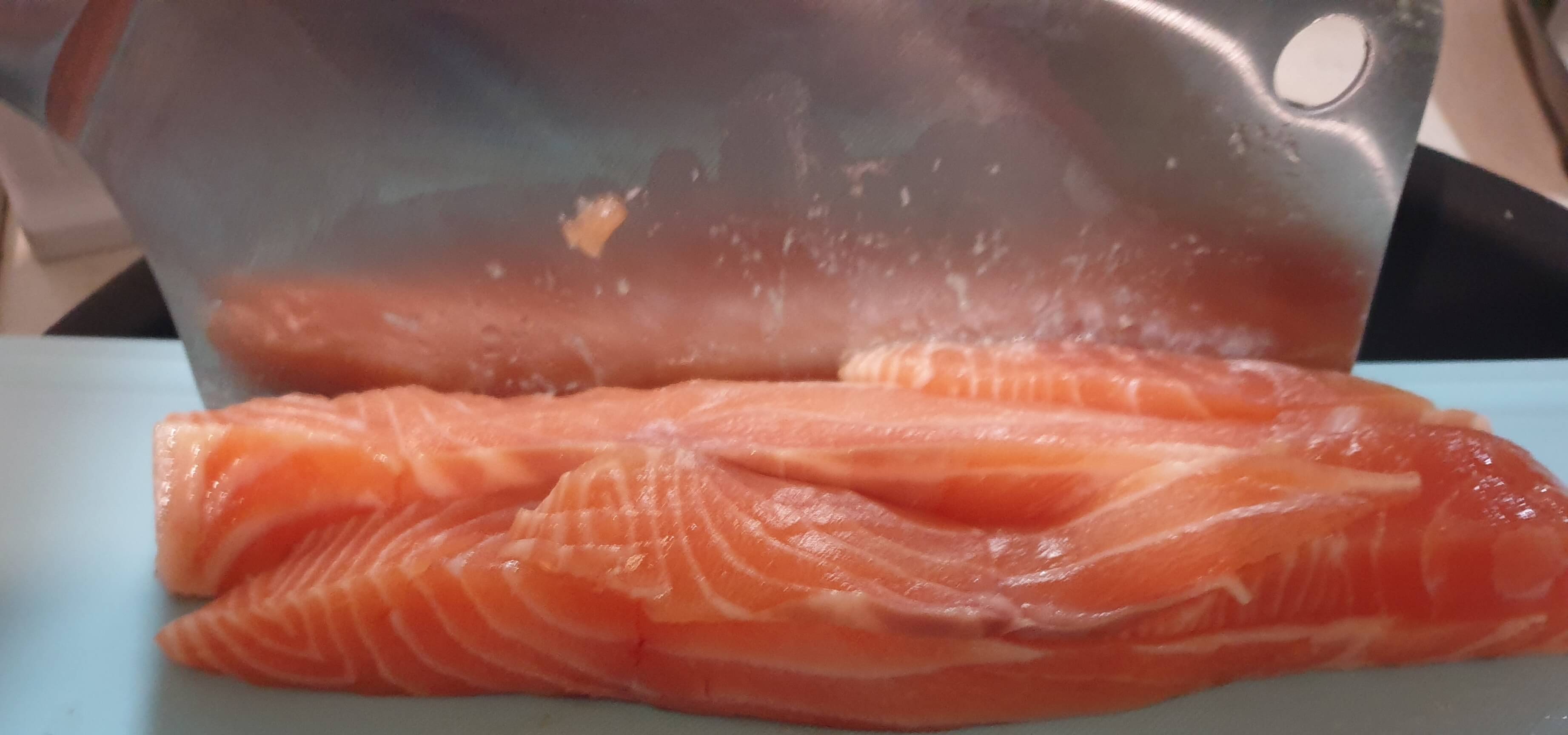 얇은 부분은 연어 살을 더 잘라서