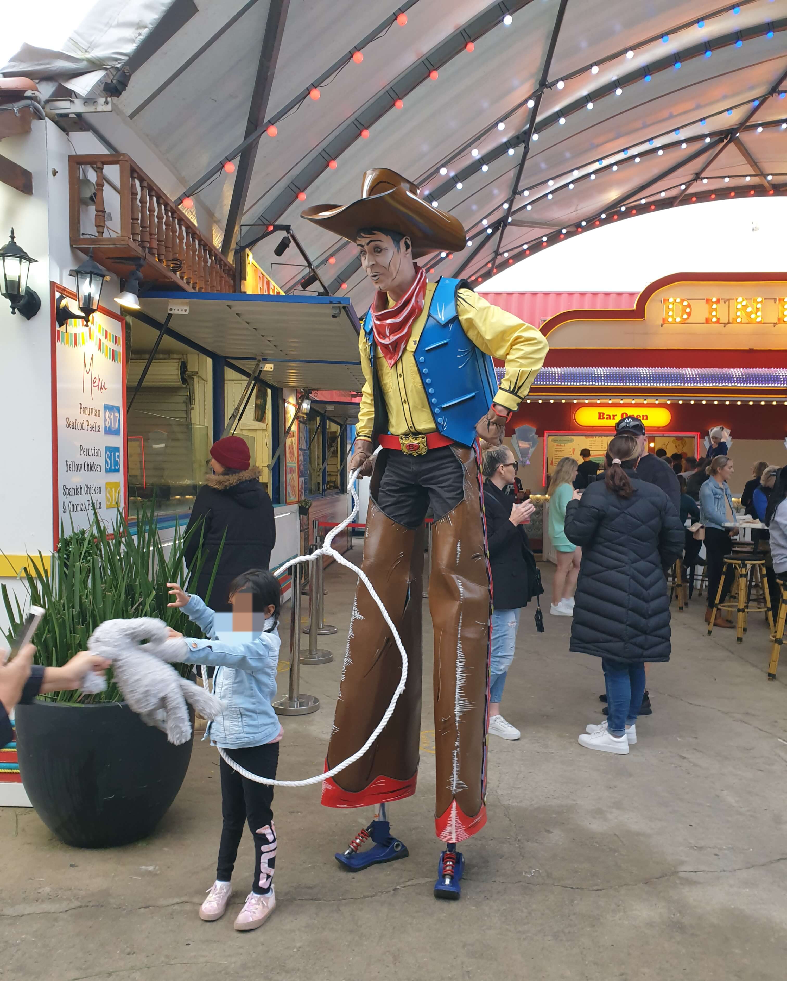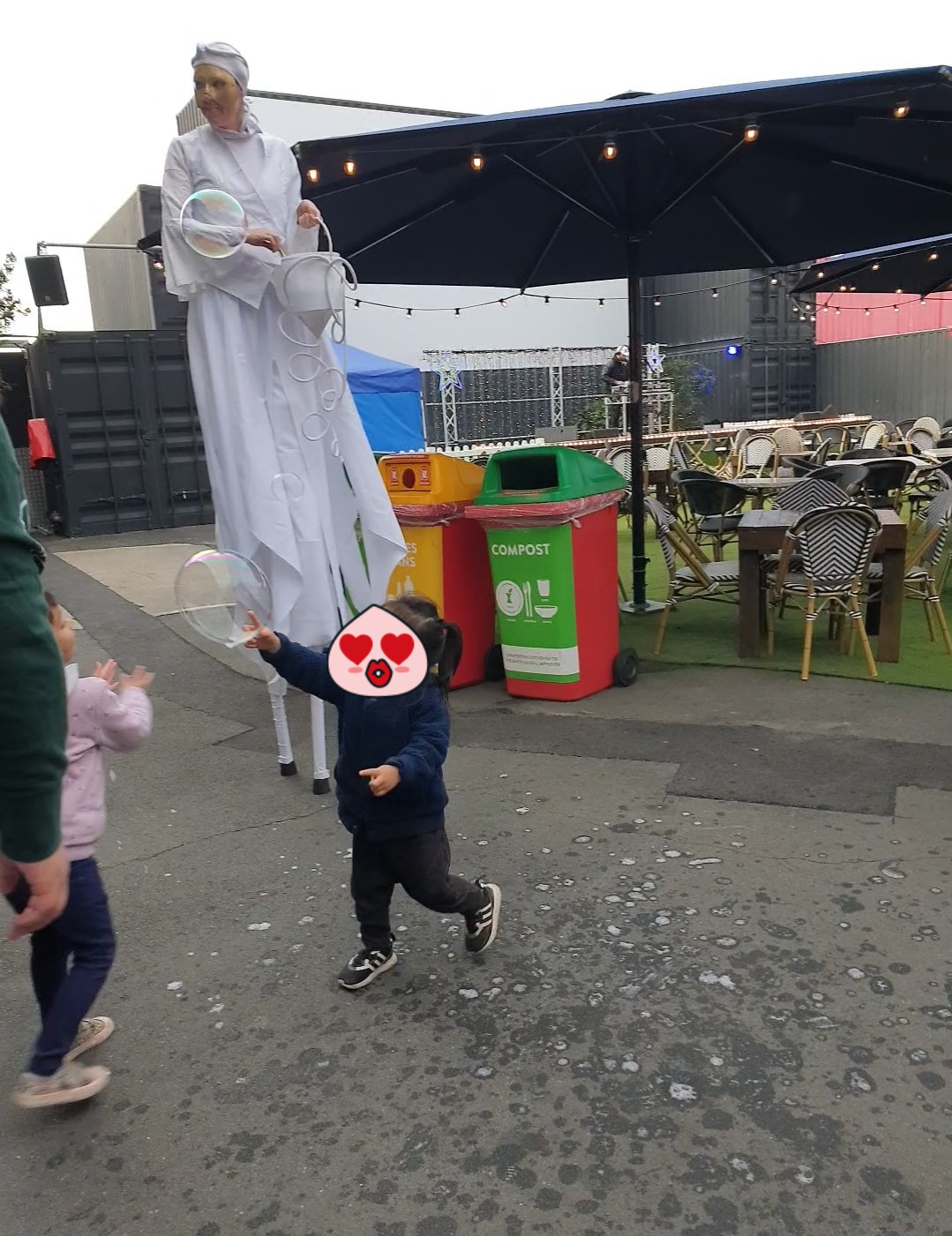 우리 아이는 카우보이 아저씨한테는 안 가고 비눗방울에 푹 빠졌다.