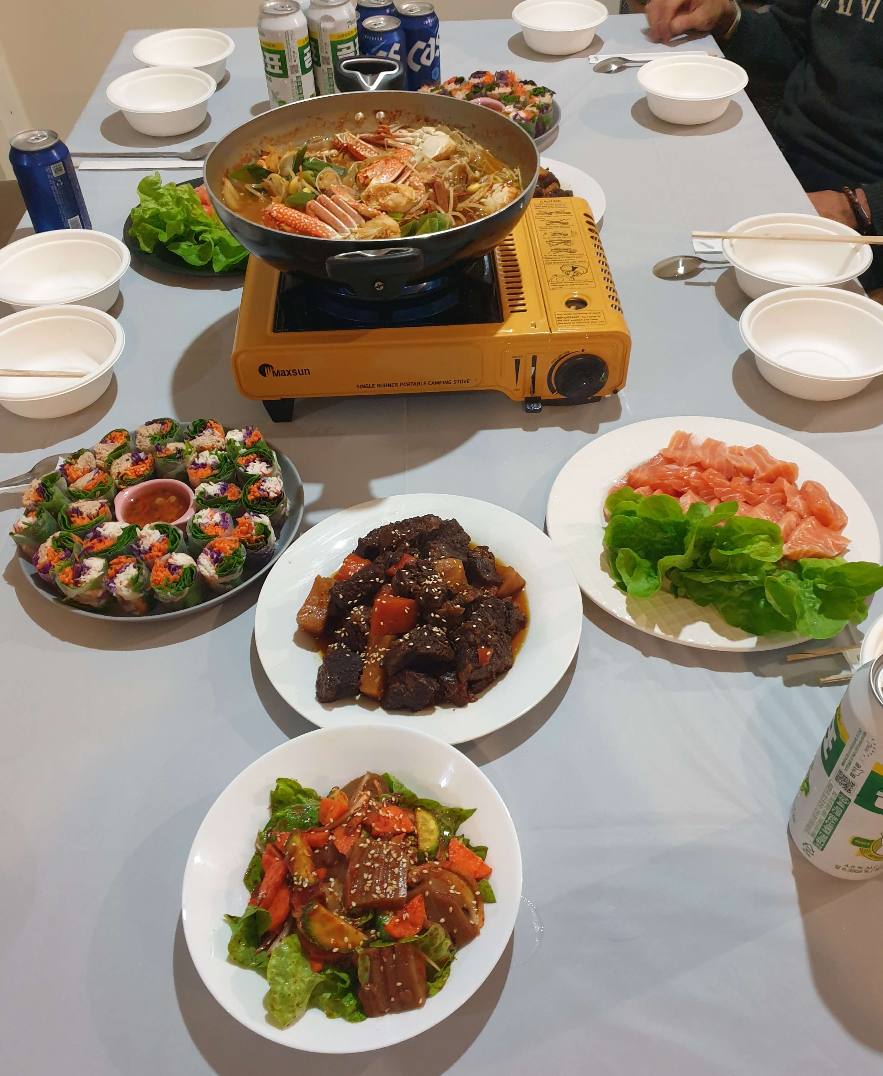 하루 종일 야채 씻고, 야채 손질하고, 고기 손질하고 요리 시작하니 어느덧 손님들 오실 시간이더라고요. ㅠㅠ