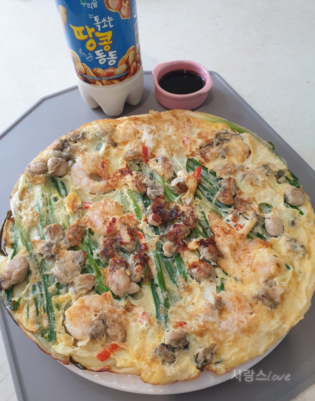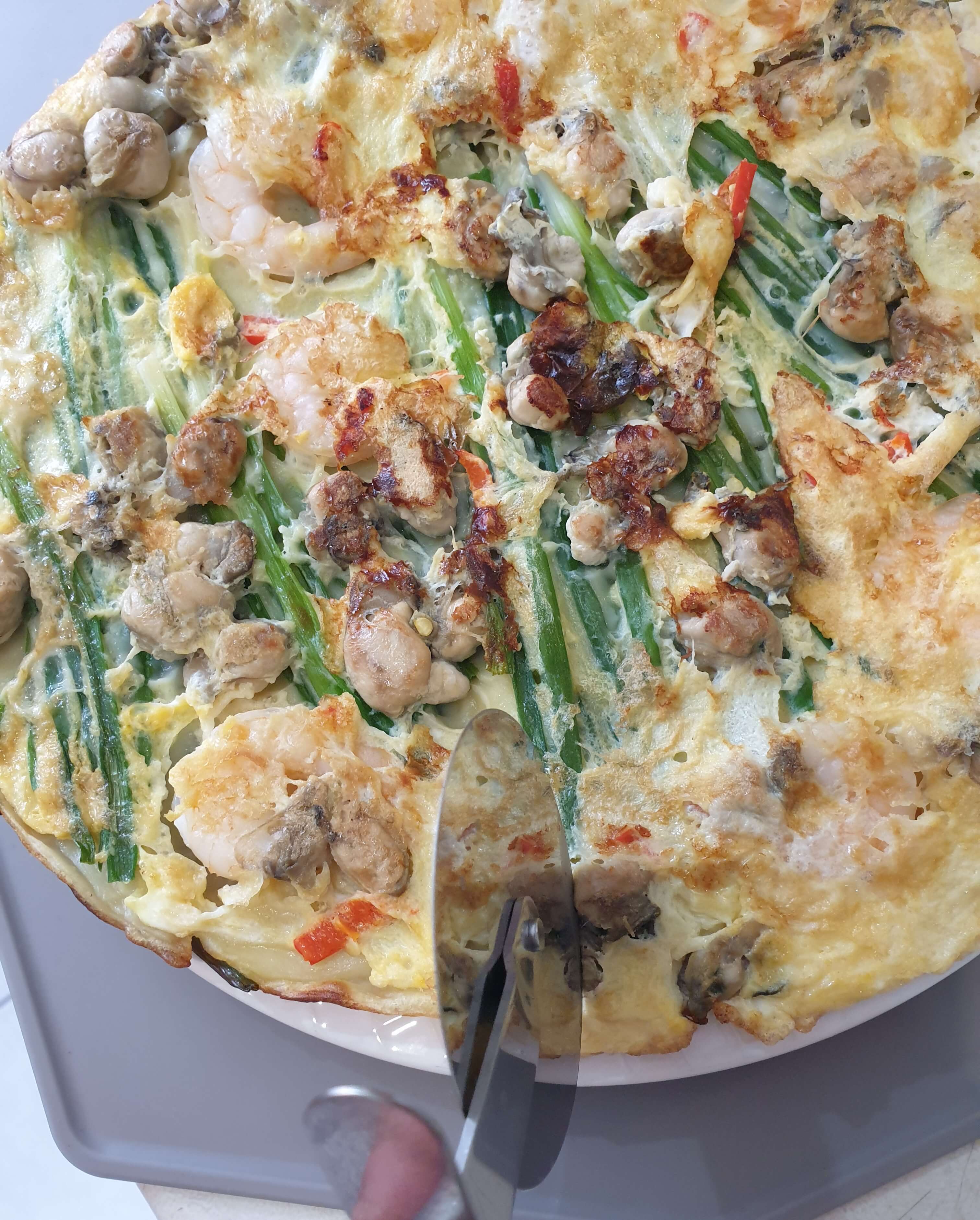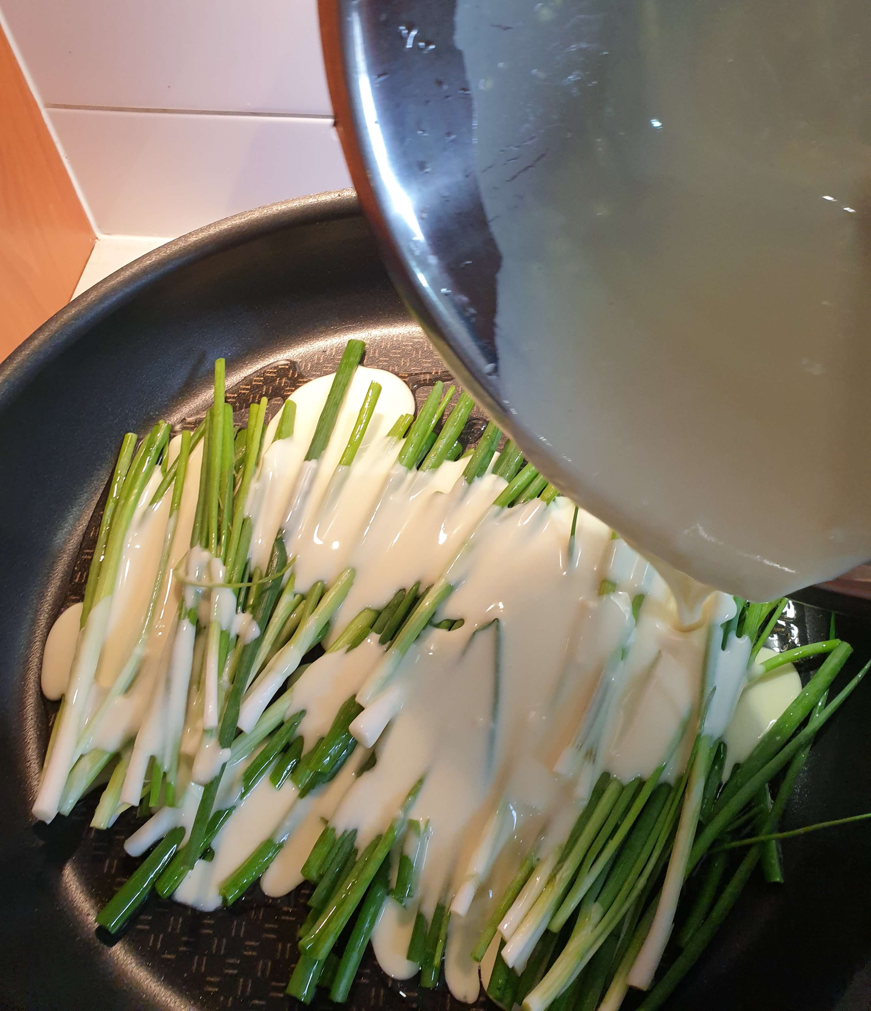 저는 파전집에서 구워주는 방식의 파전이 땡겨서 이렇게 만들었어요.