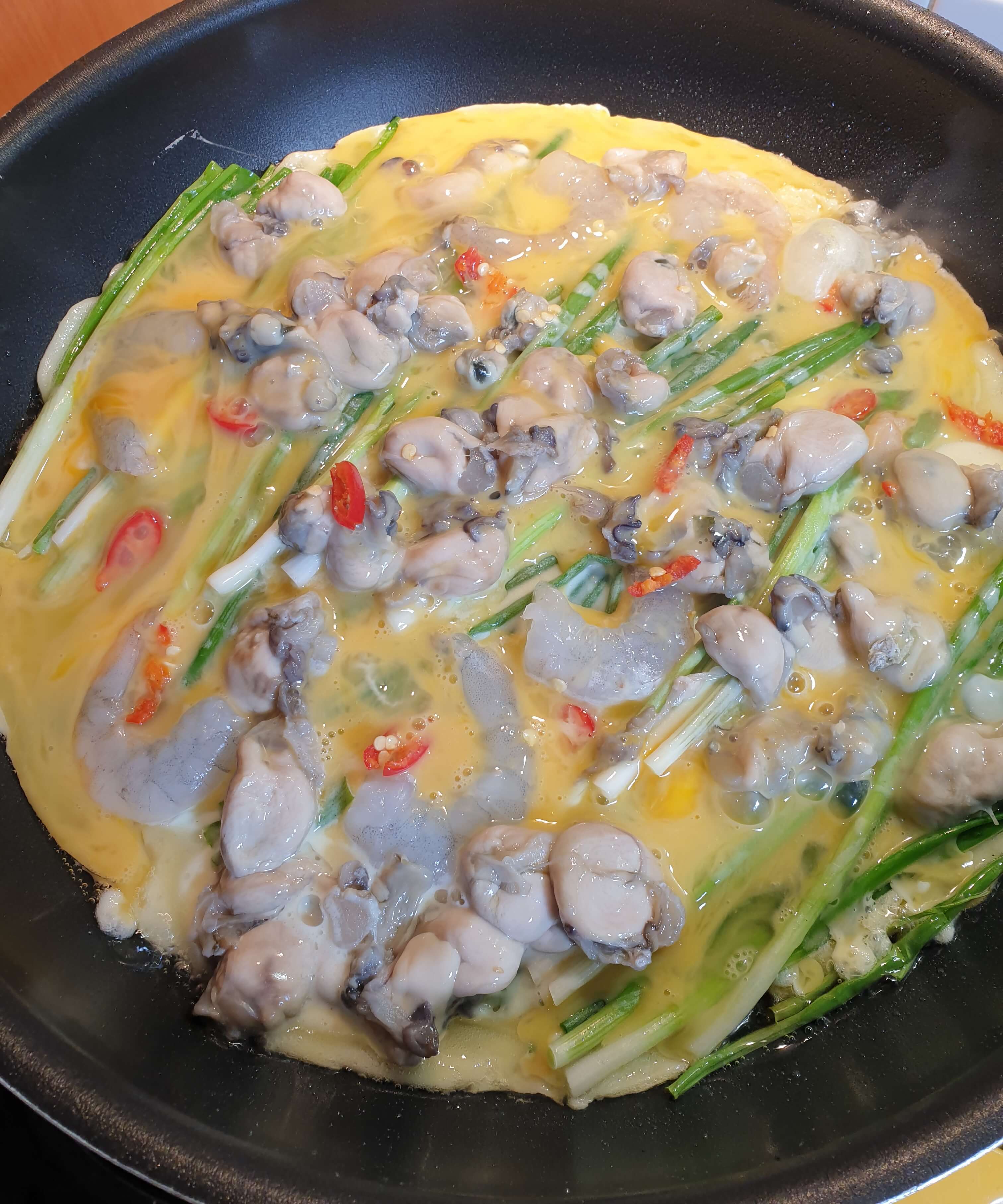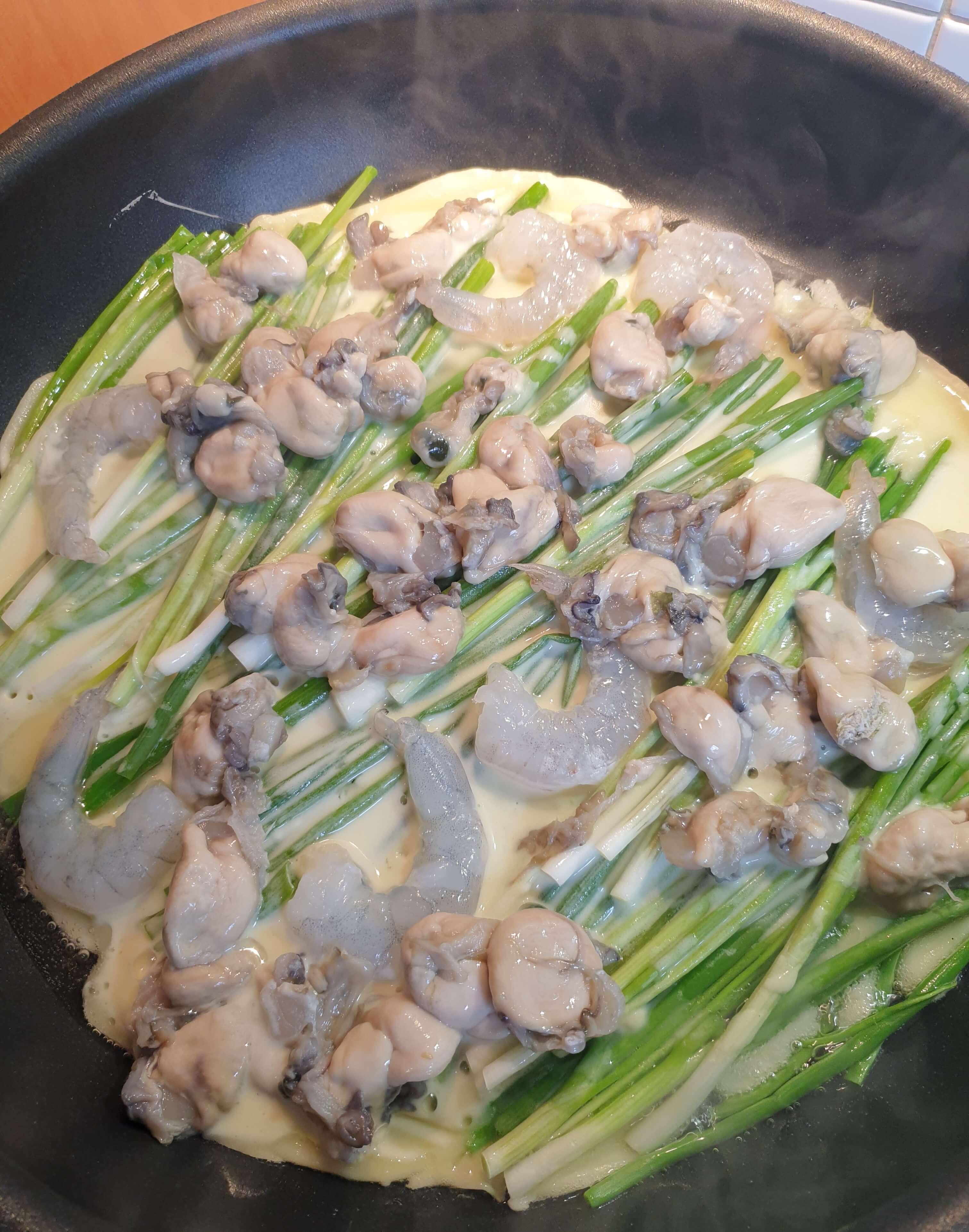 새우와 굴을 듬뿍 올리고