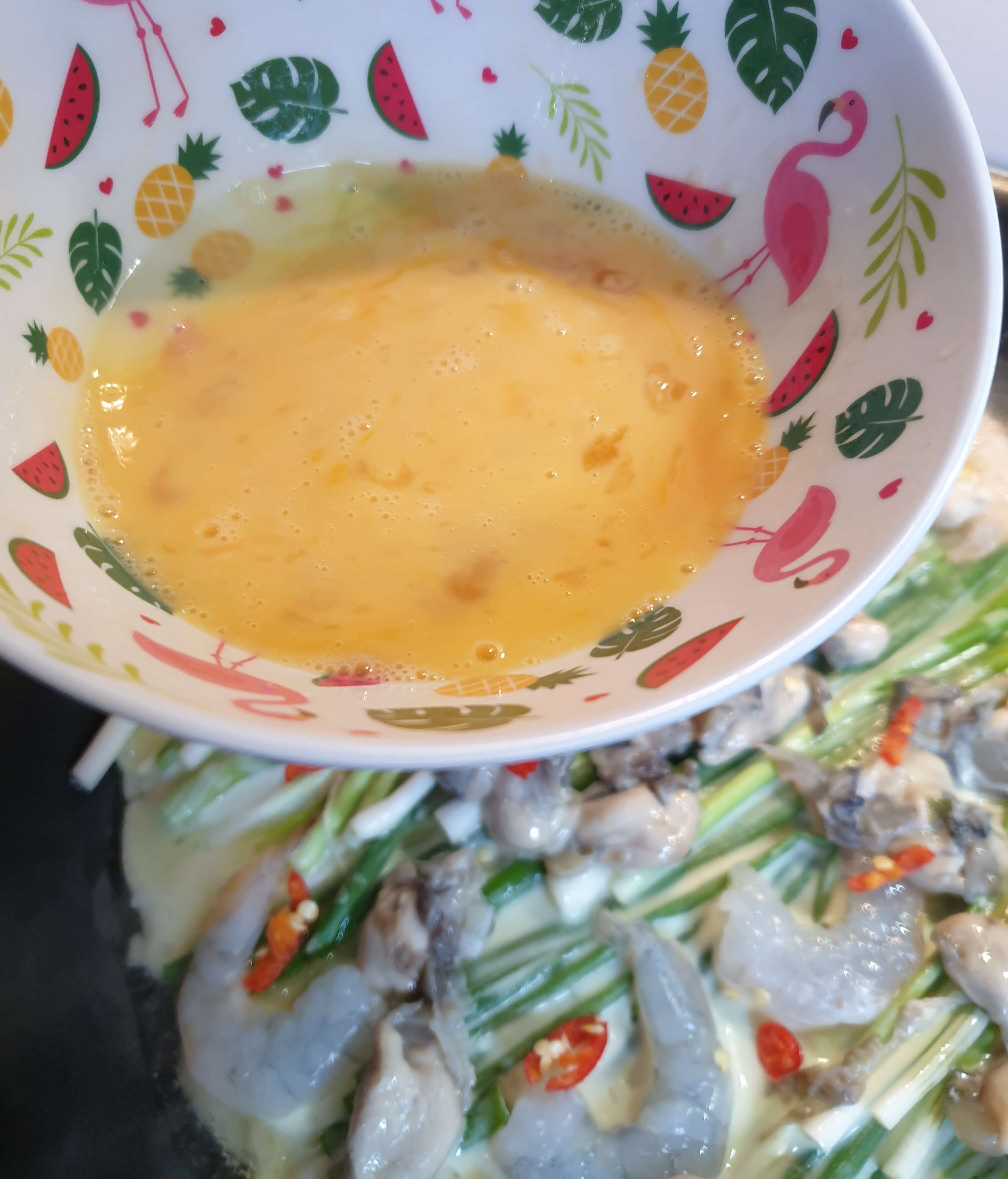 그 위에 바로 계란물을 부어주세요.