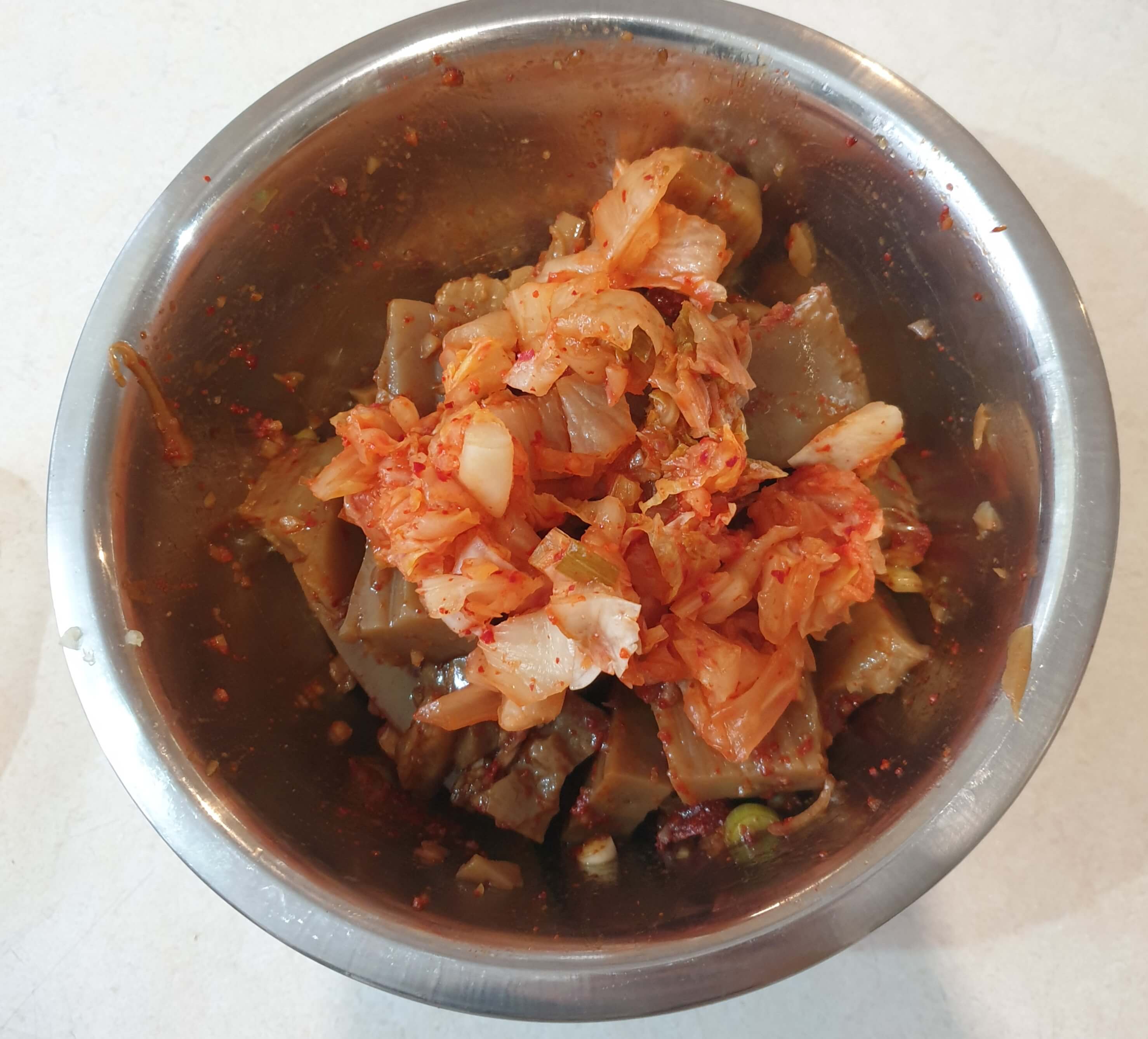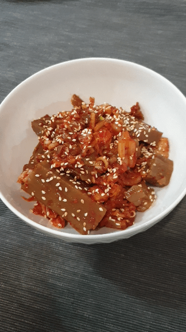 이런 식으로 김치 넣어 무친 도토리 묵무침은 처음인데
