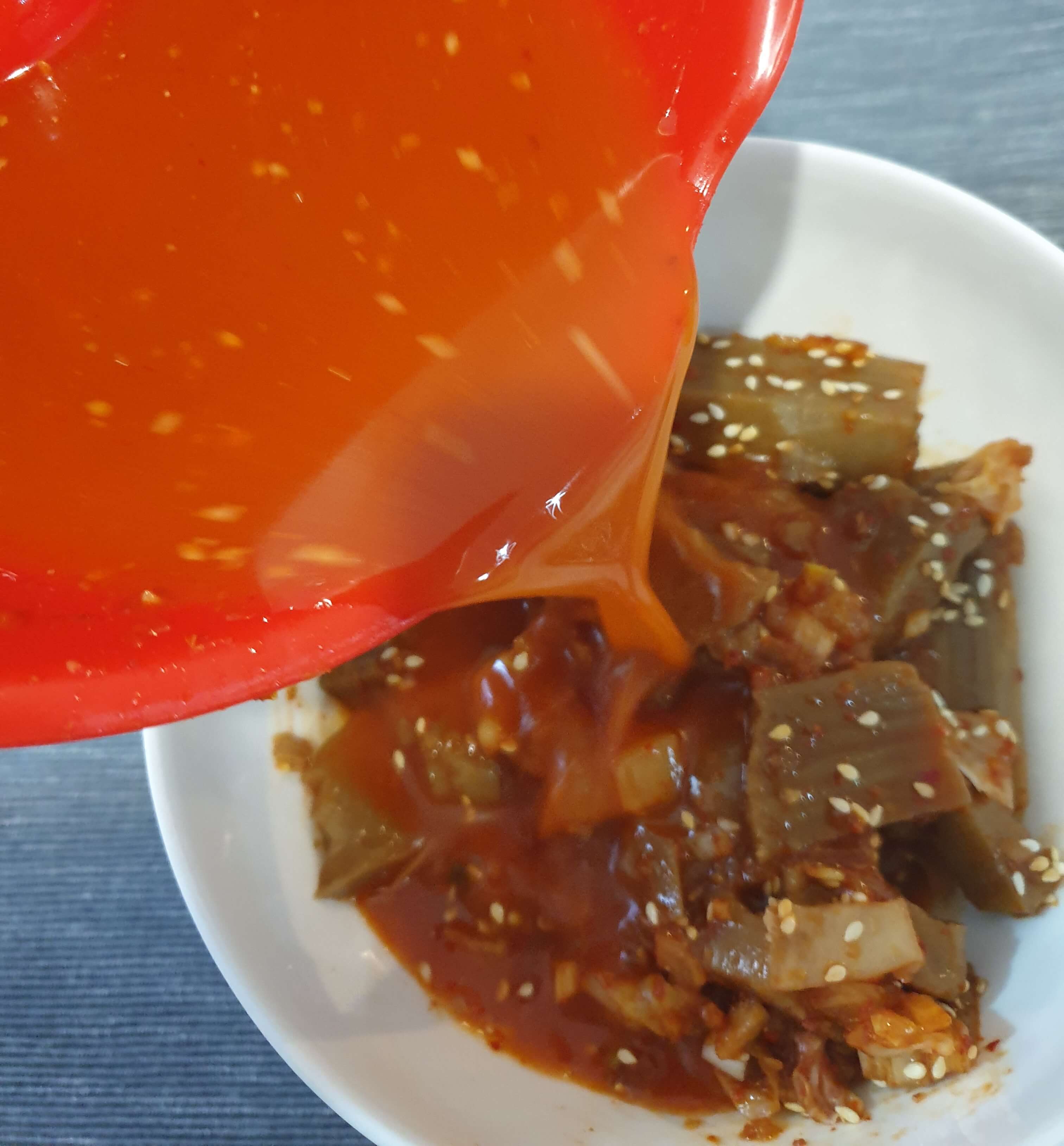 남은 묵무침에 부어주었어요.