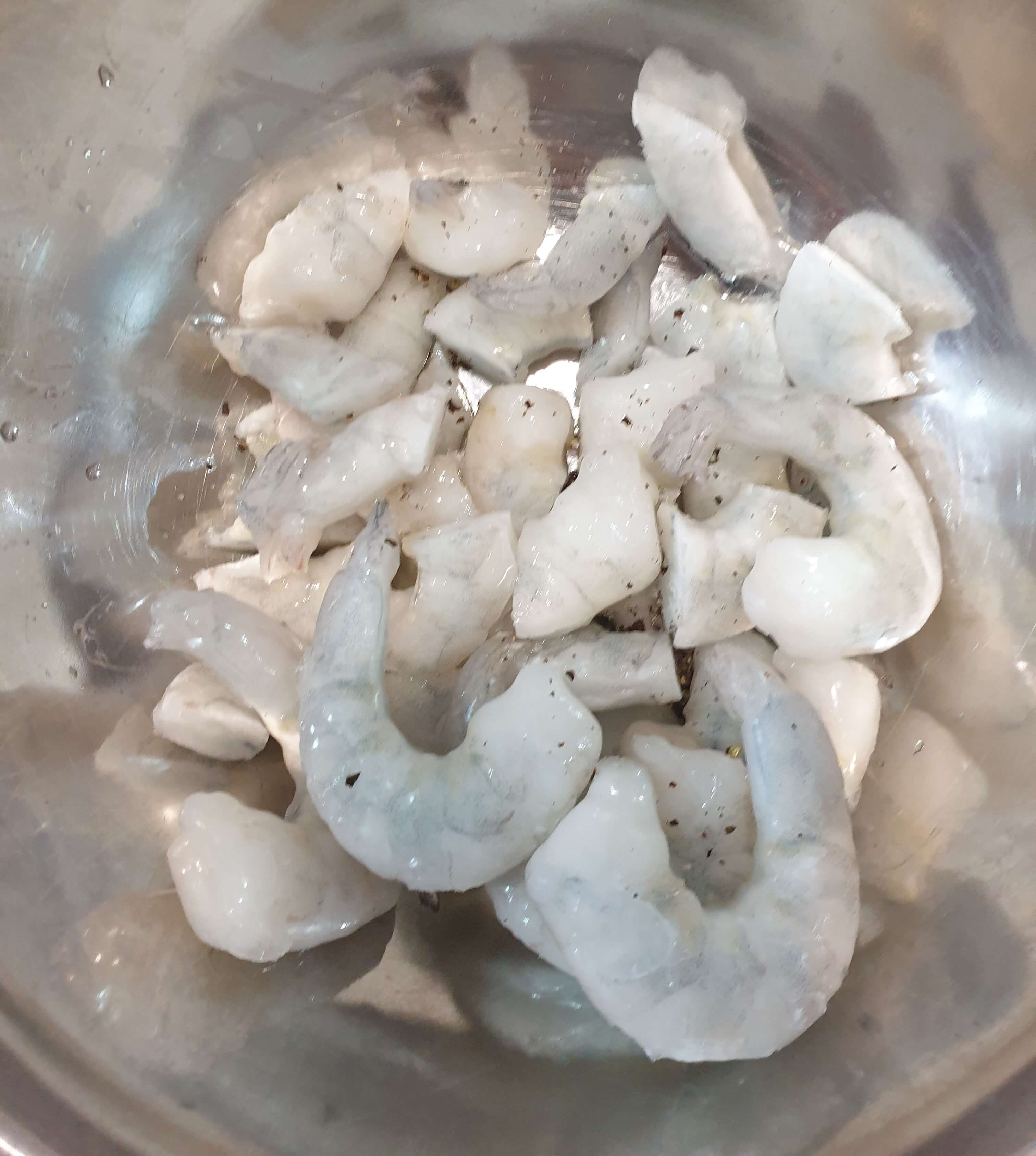 먼저 냉동 새우 약 20마리를 해동해 주세요.