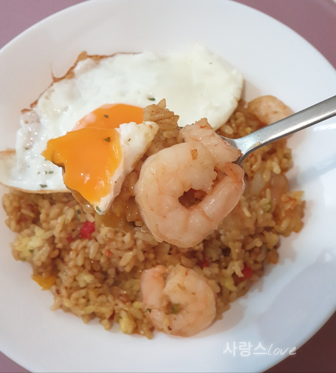 엄청 맛있는 새우 볶음밥이에요.