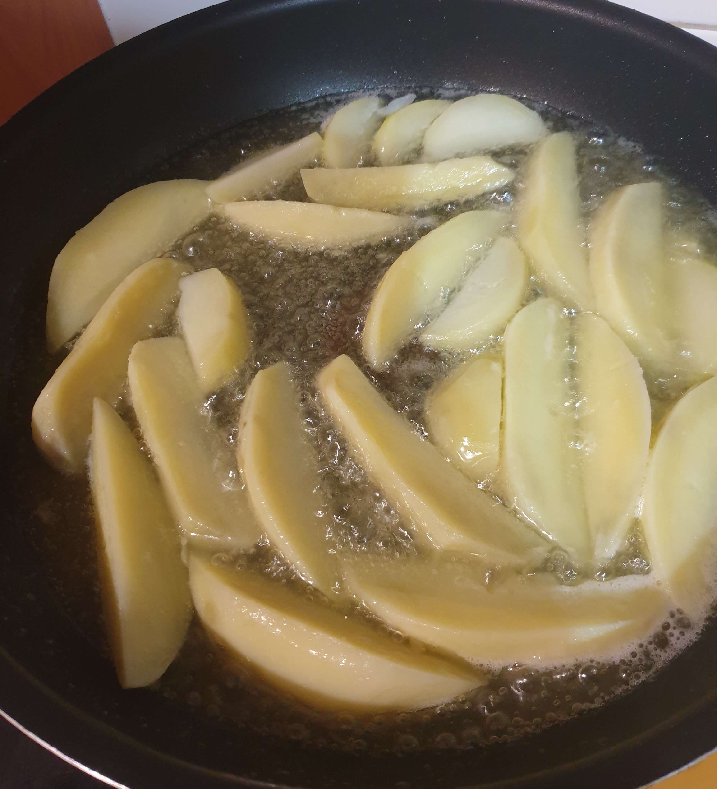 감자 겉면이 바삭하게 익었을 때