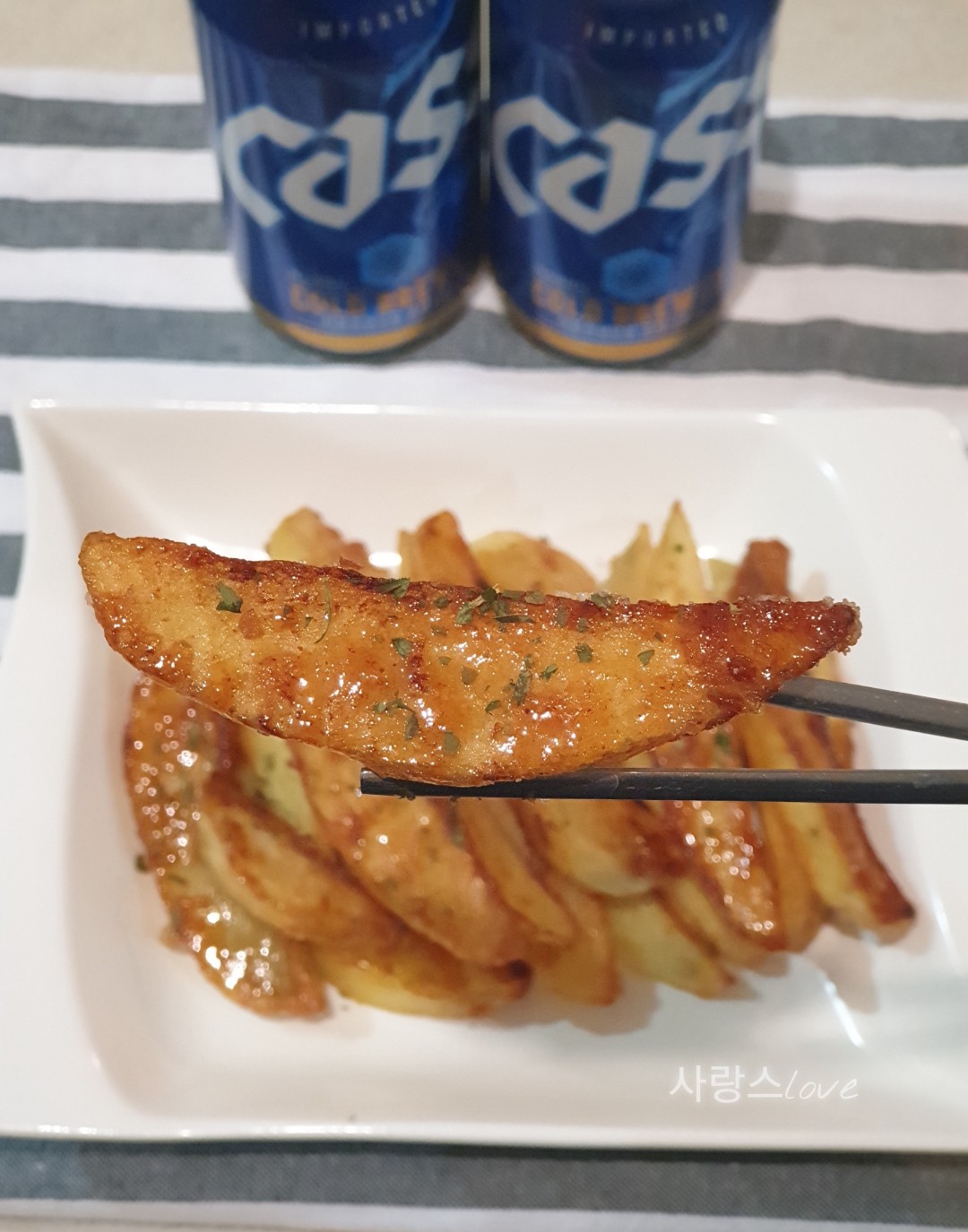 만들어 먹어본 허니버터 웨지감자 레시피예요.