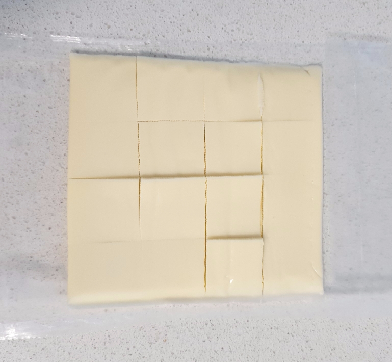 그리고 사각 치즈를 원하는 사이즈로 잘라 주세요