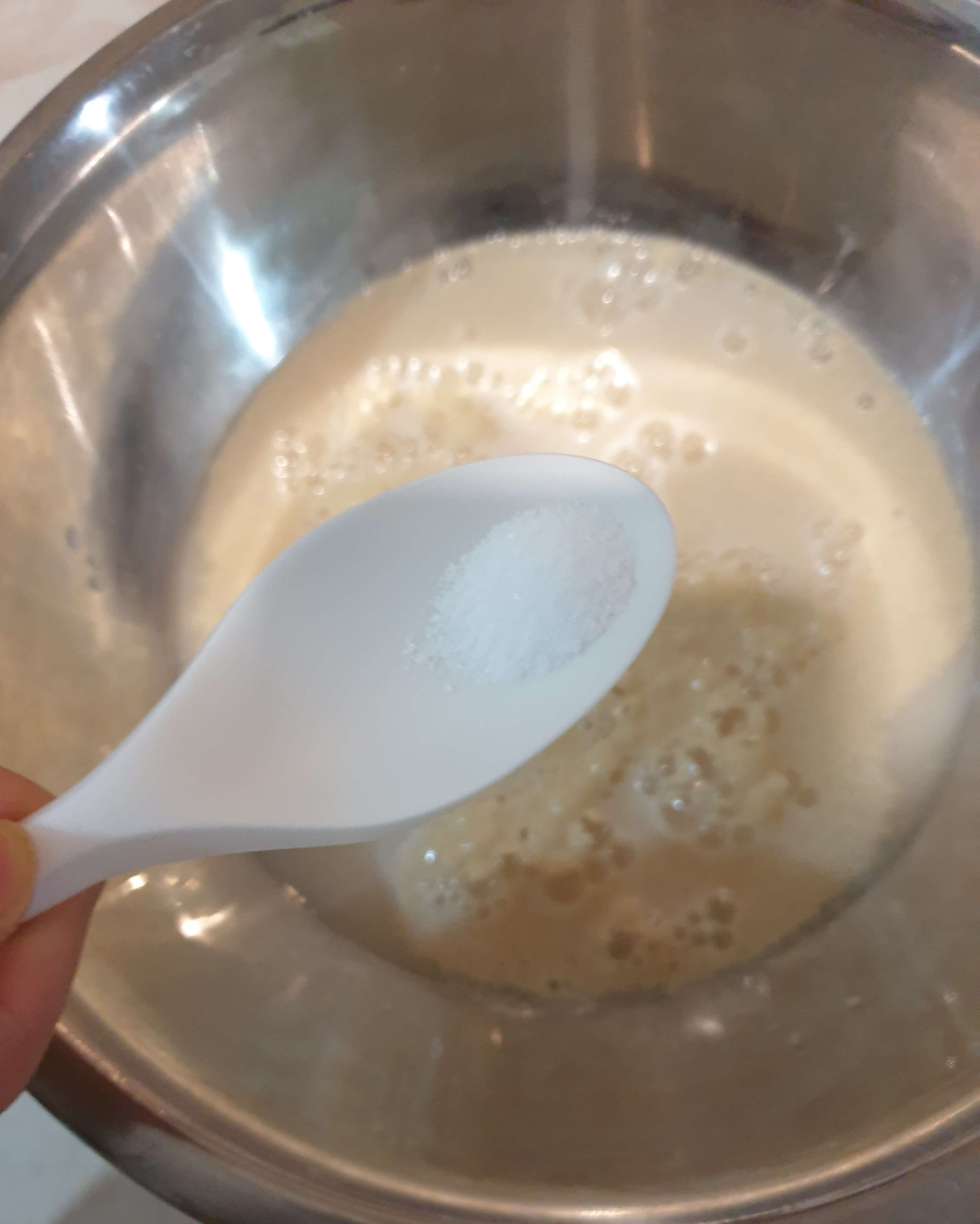 베이킹파우더 7g을 체 쳐서 넣은 후