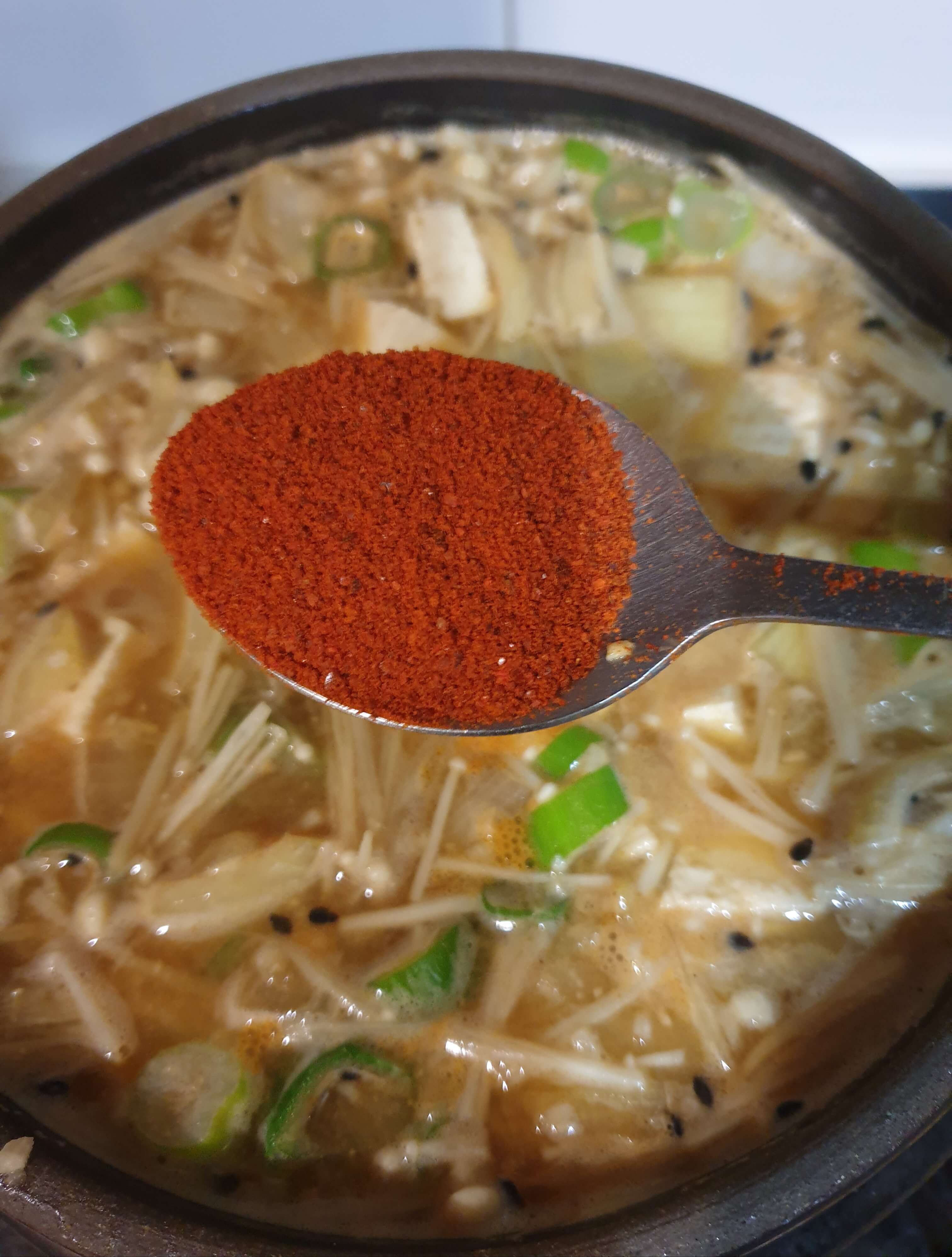 청양 고춧가루로 칼칼하게 끓였어요.
