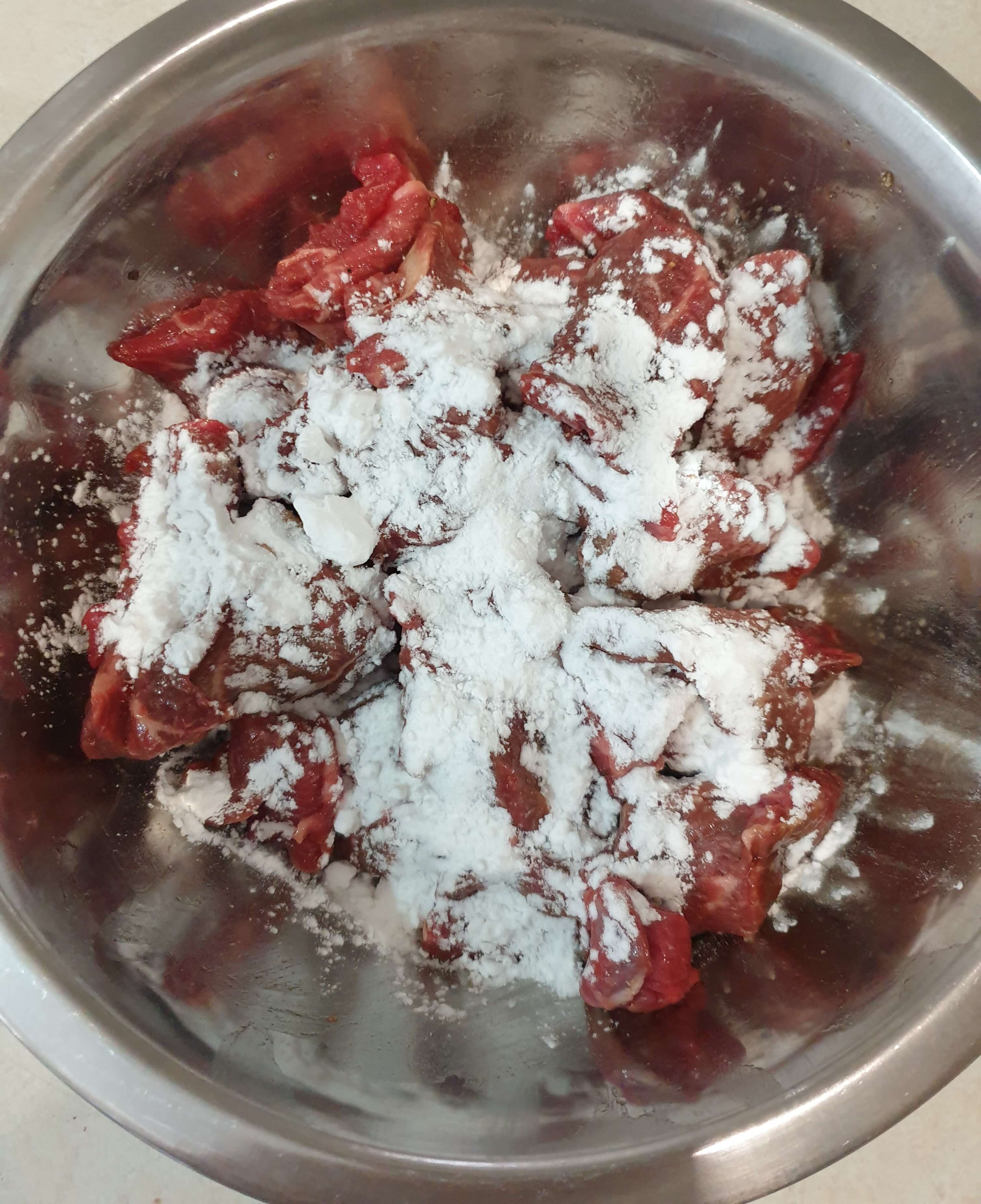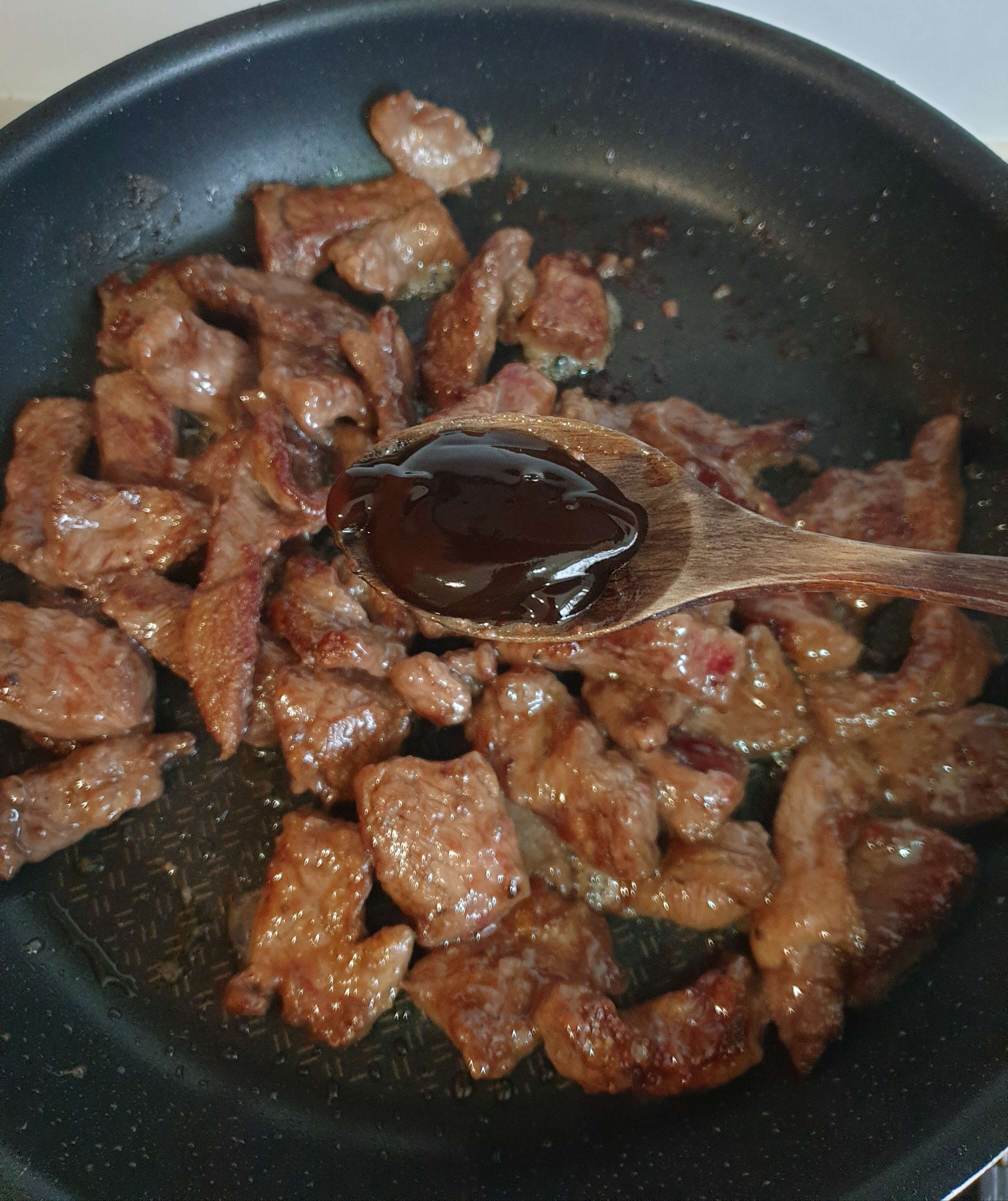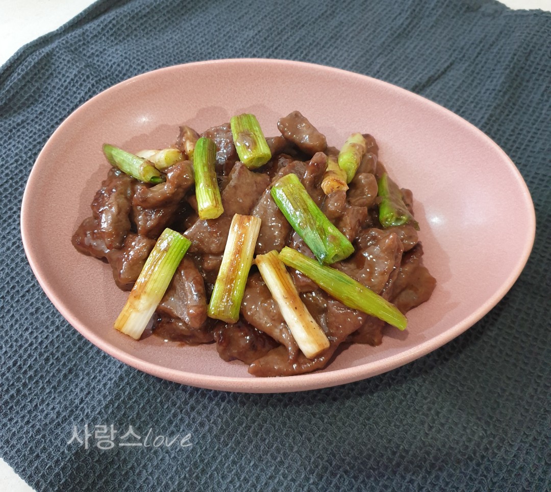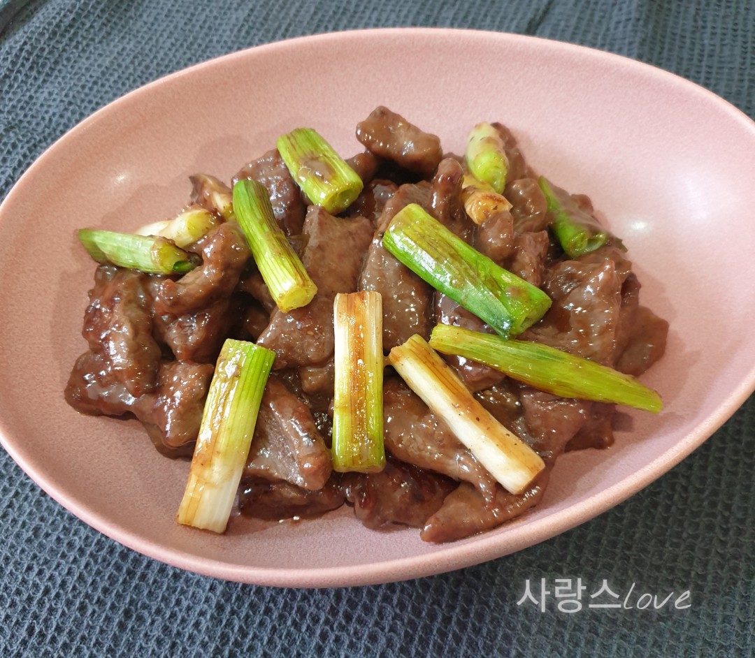 저는 스테이크용 고기를 먹기 좋은 크기로 잘라 사용했어요.