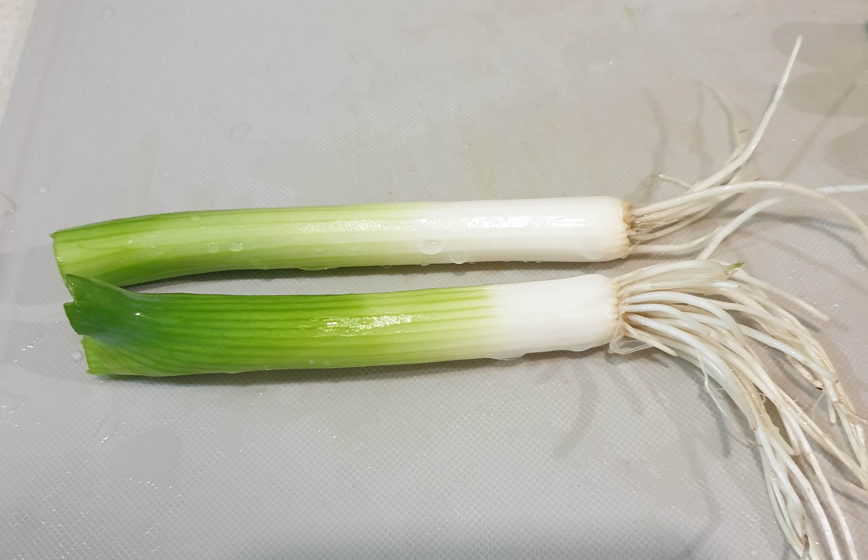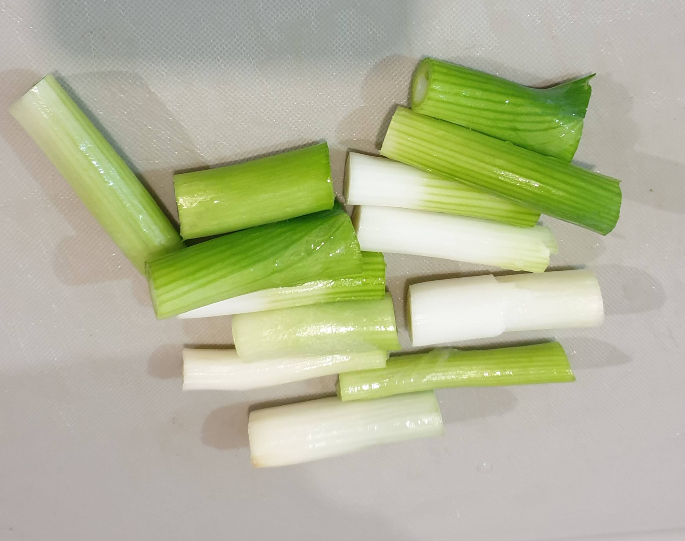 파의 줄기(흰 부분)를 5cm 크기로 잘라주세요.