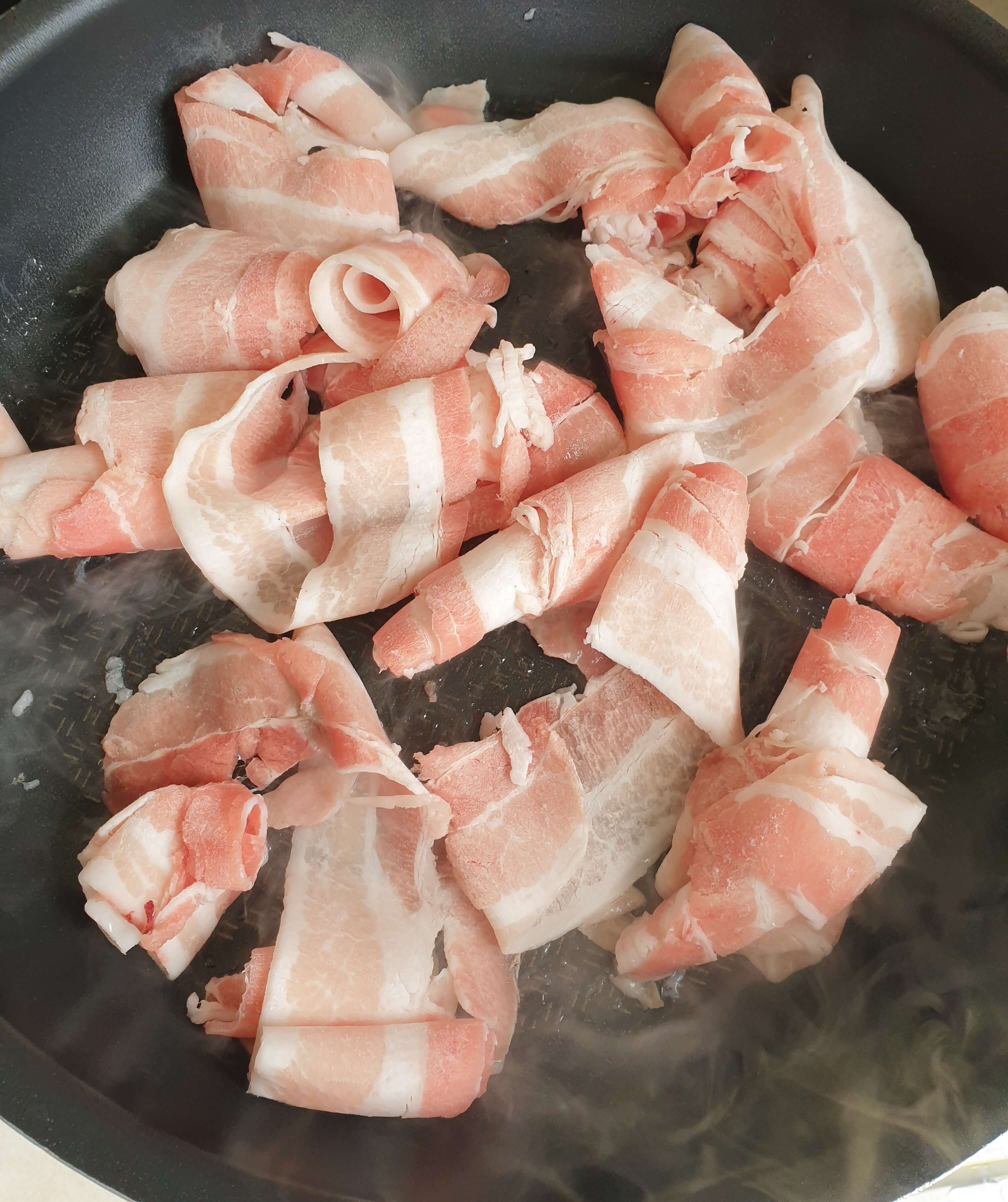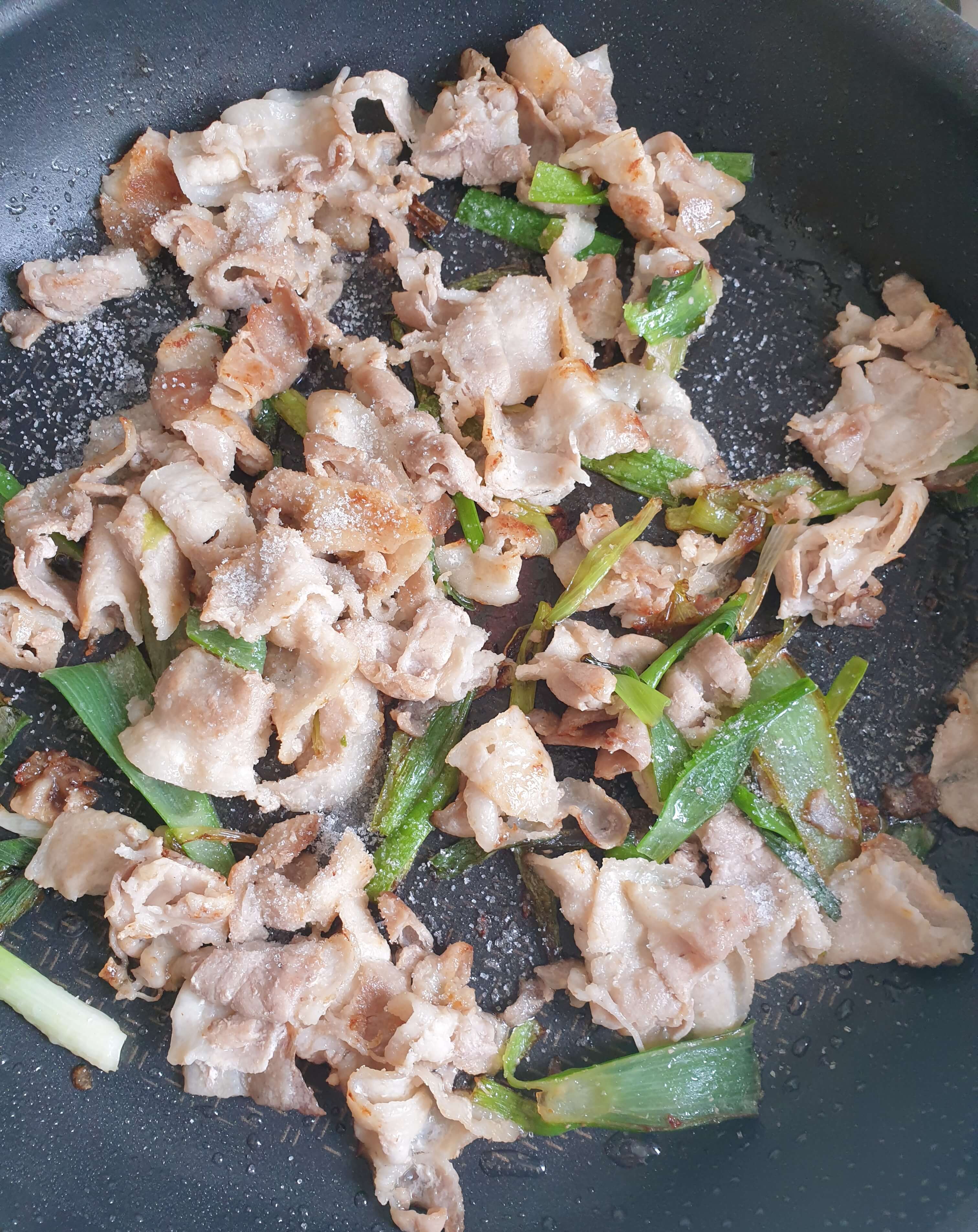 팬에 대패 삼겹살 300g을 넣고