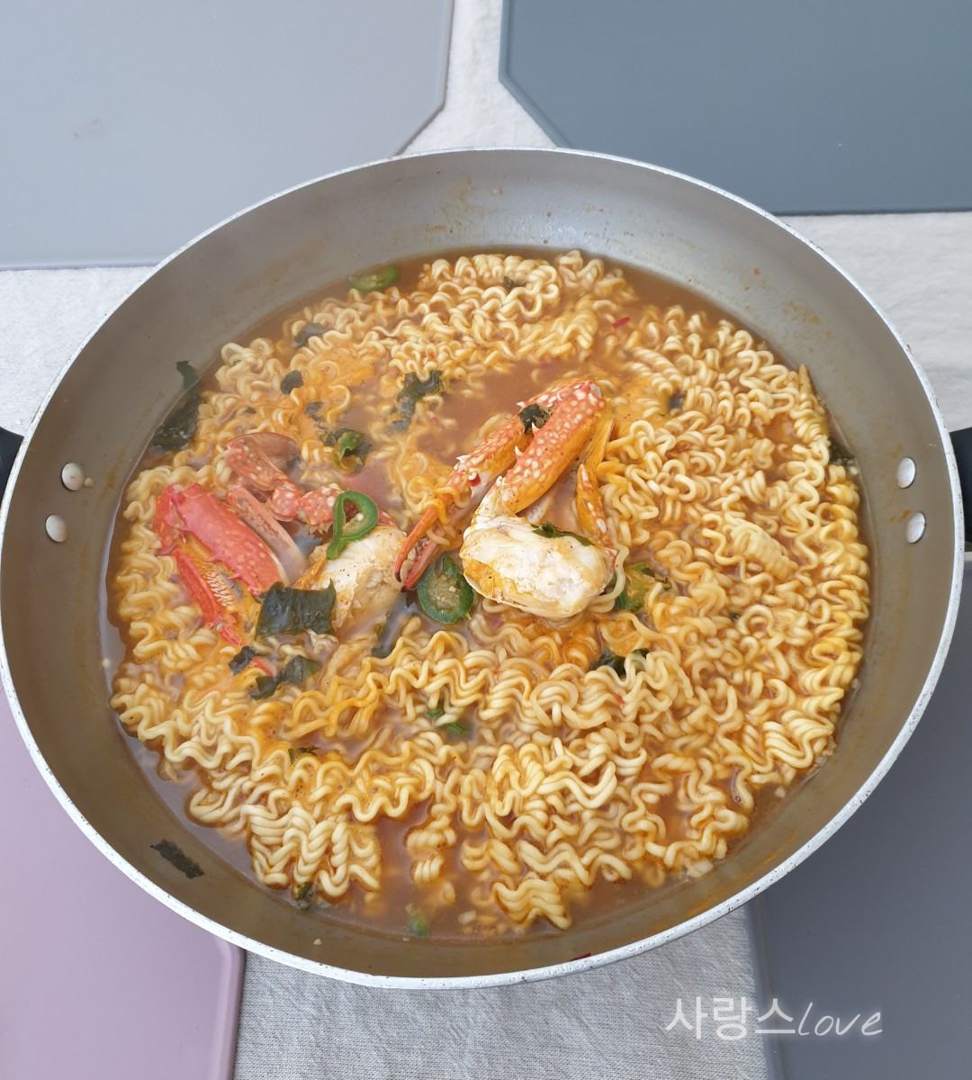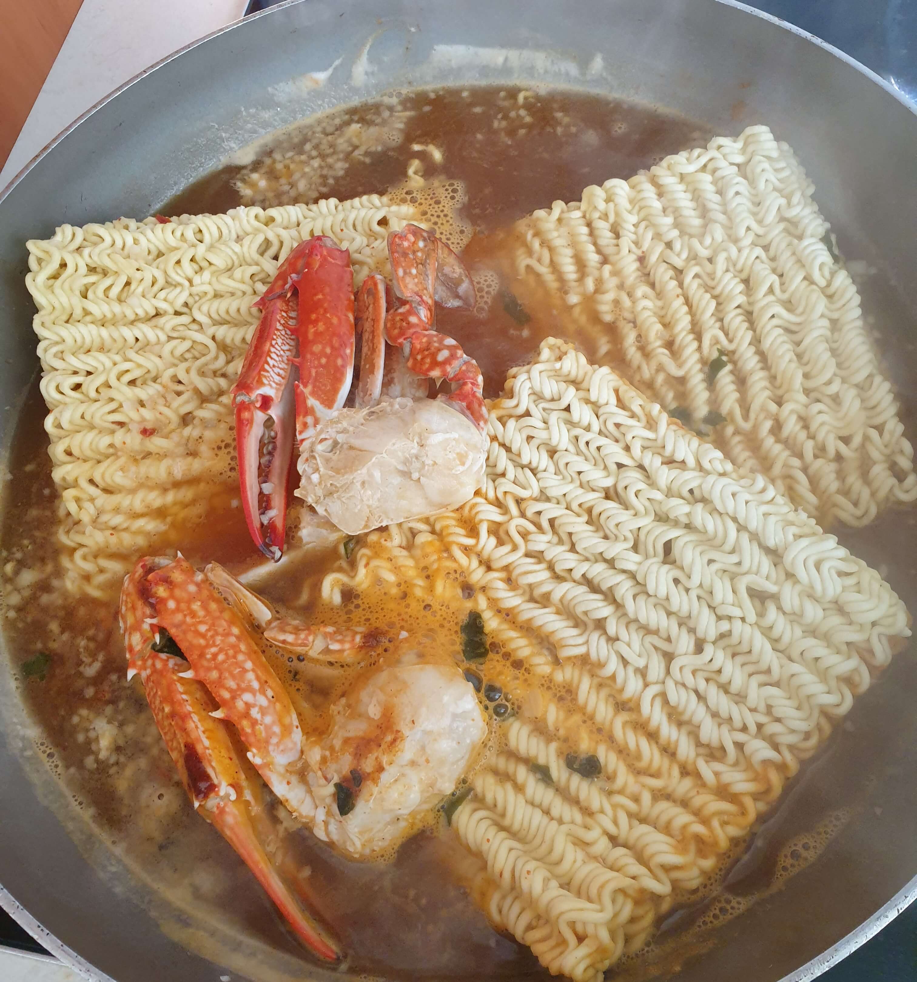 그래도 꽃게라면을 끓이기로 결정했어요.