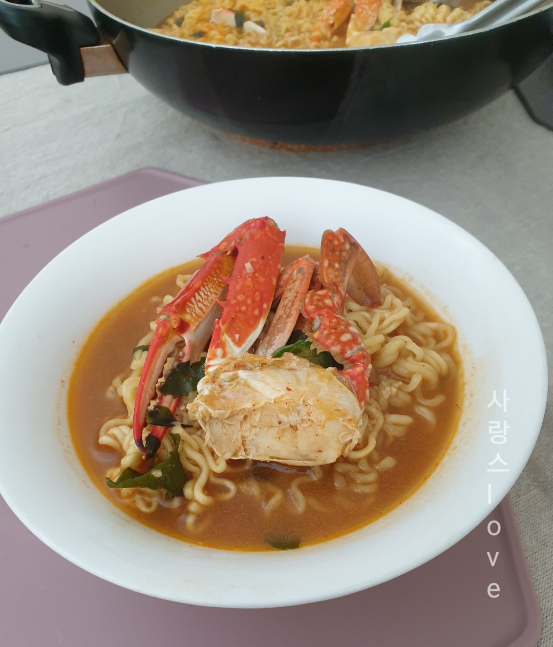 라면 3개에 꽃게 1마리라 무척 아쉽네요.