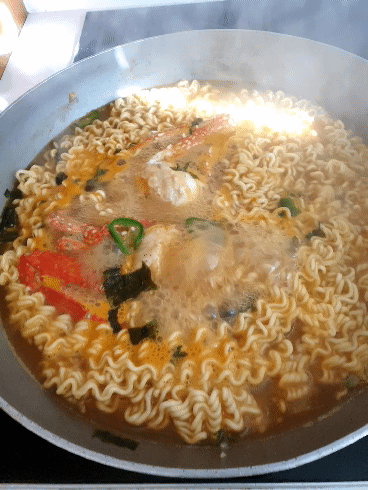 라면 물은 평소보다 약간 더 넣었어요.