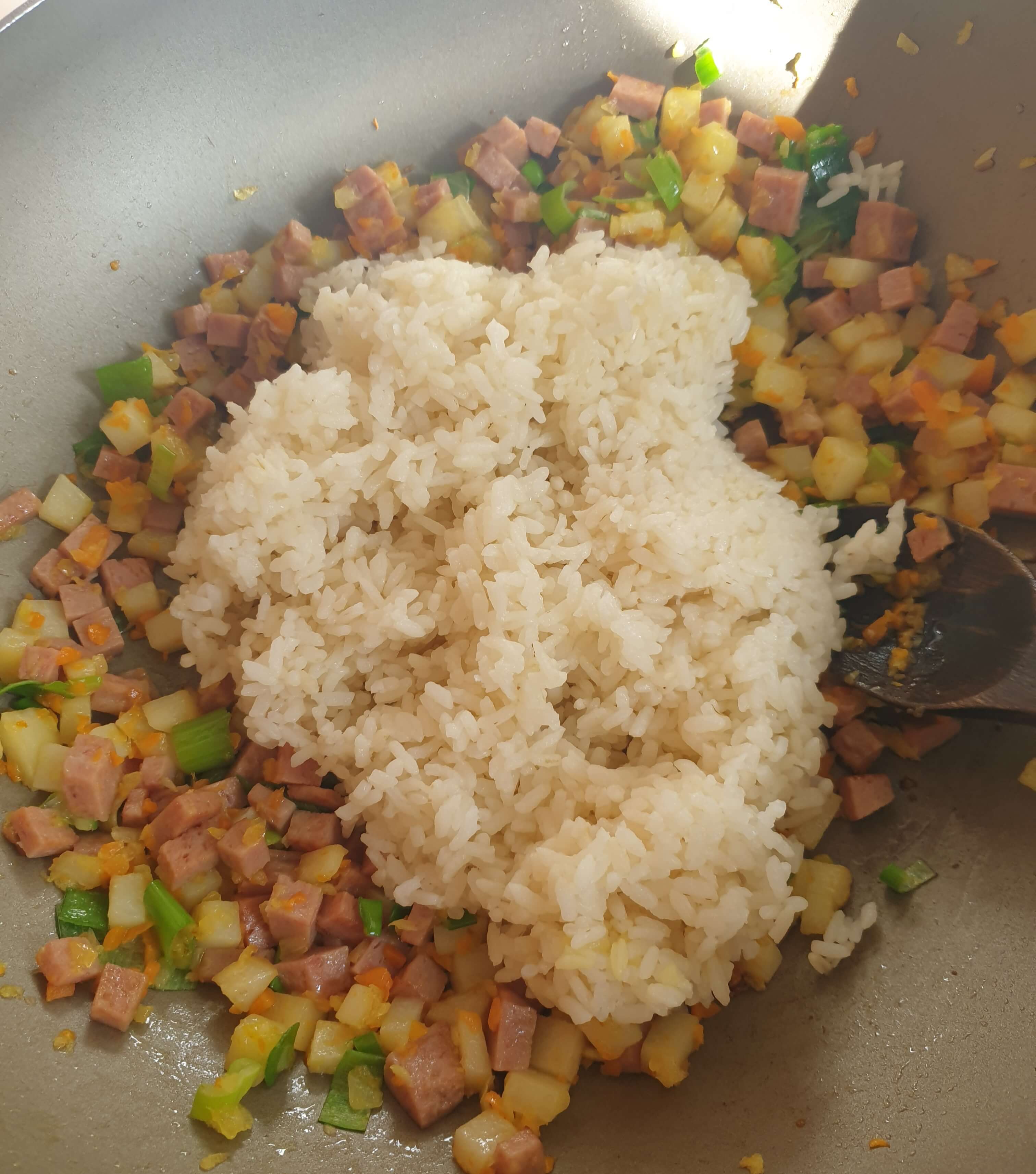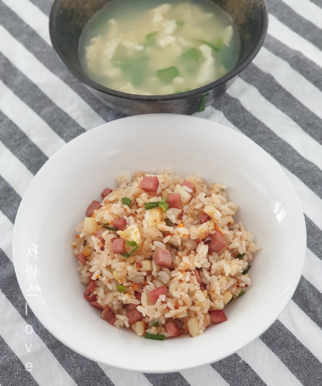 햄이랑 감자 넣고 볶음밥을 해줬는데