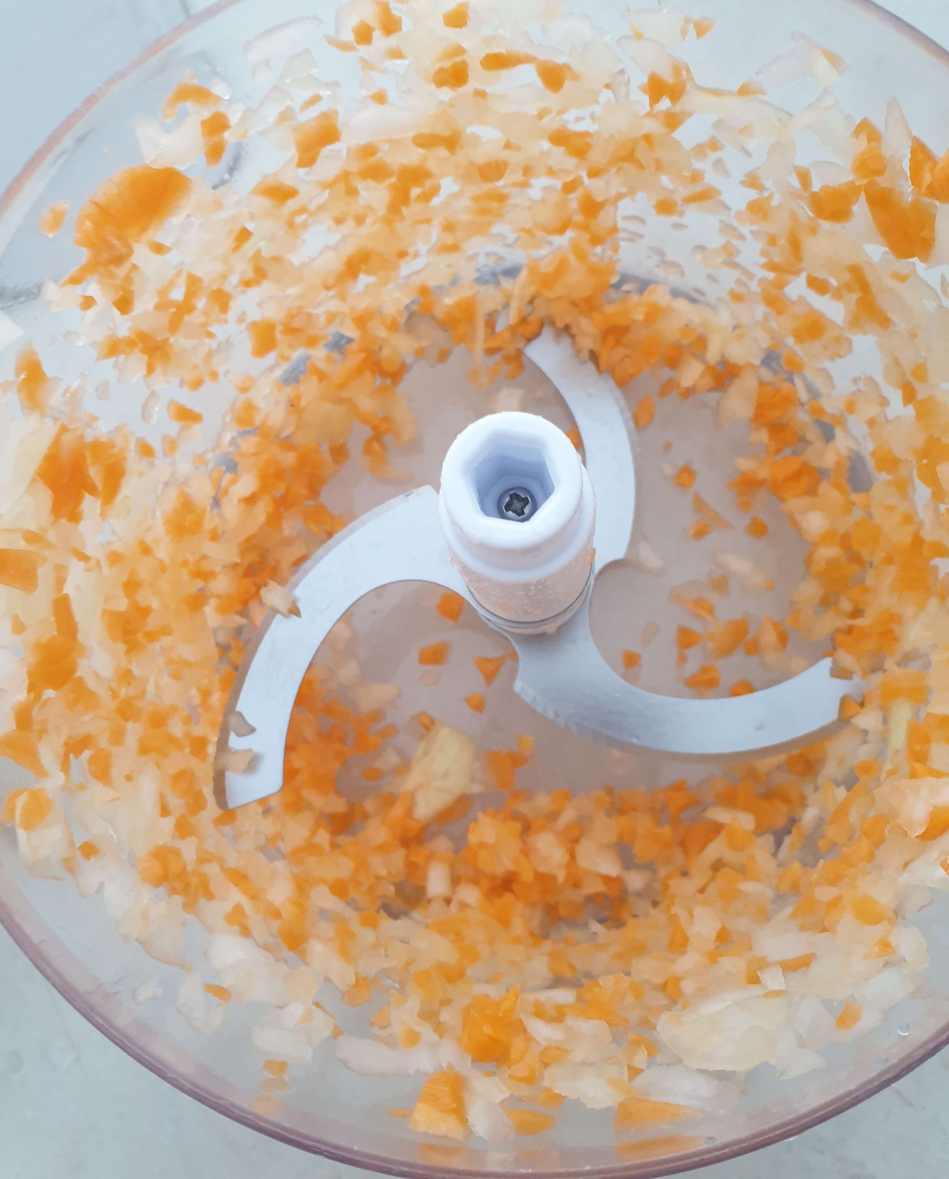 당근 1/3개랑 양파 1/4개는 아주 작게