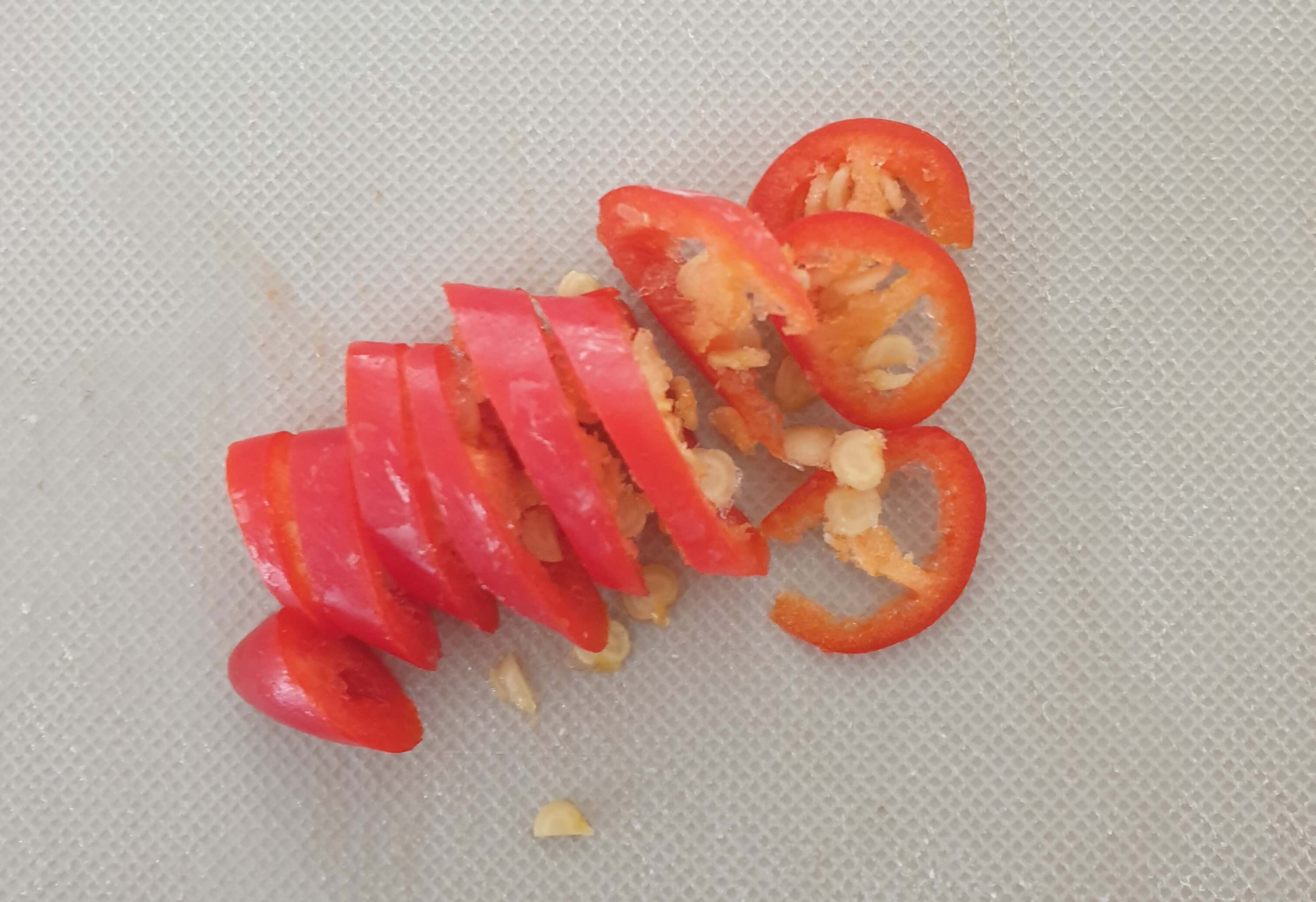 청고추와 홍고추도 썰어주세요.