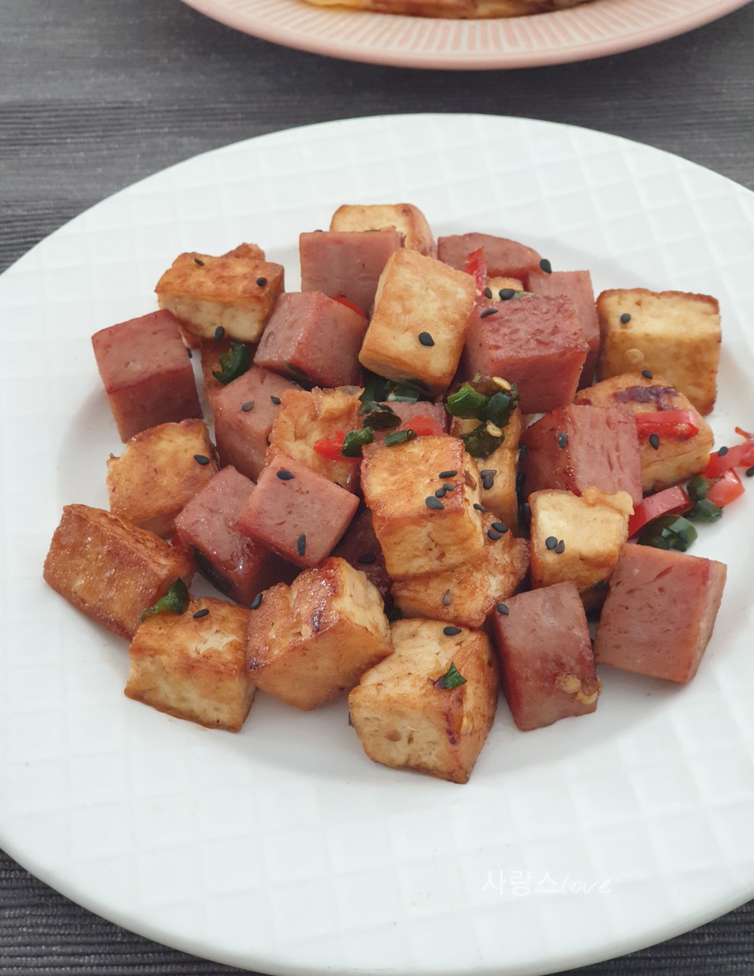 스팸도 두부와 비슷한 양과 크기로 준비합니다.