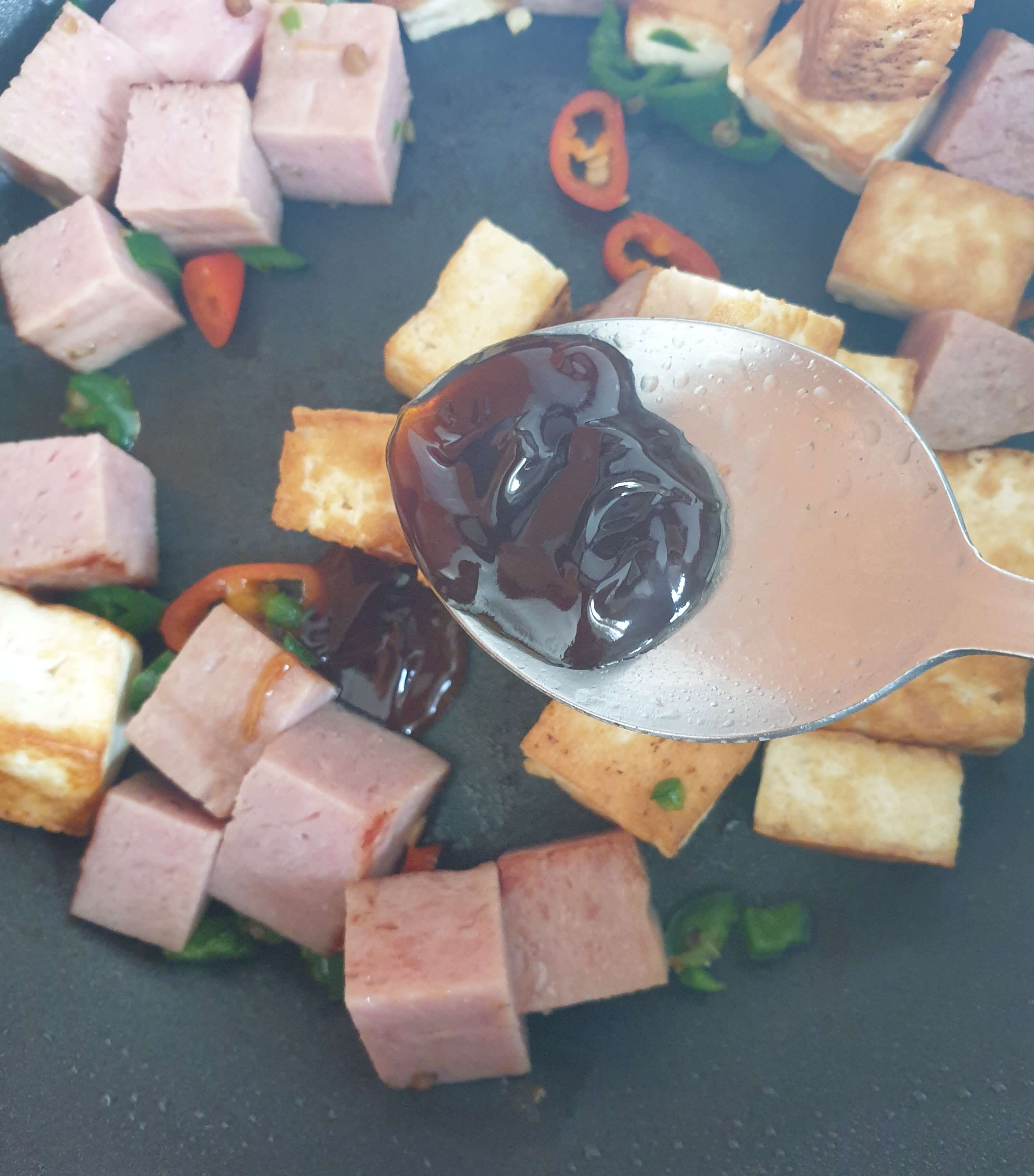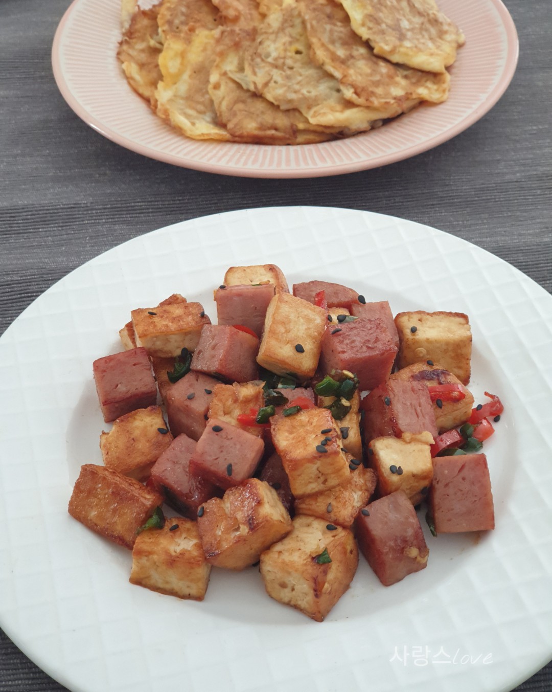 두부랑 스팸이랑 같이 집어 먹으면 딱 좋아요.
