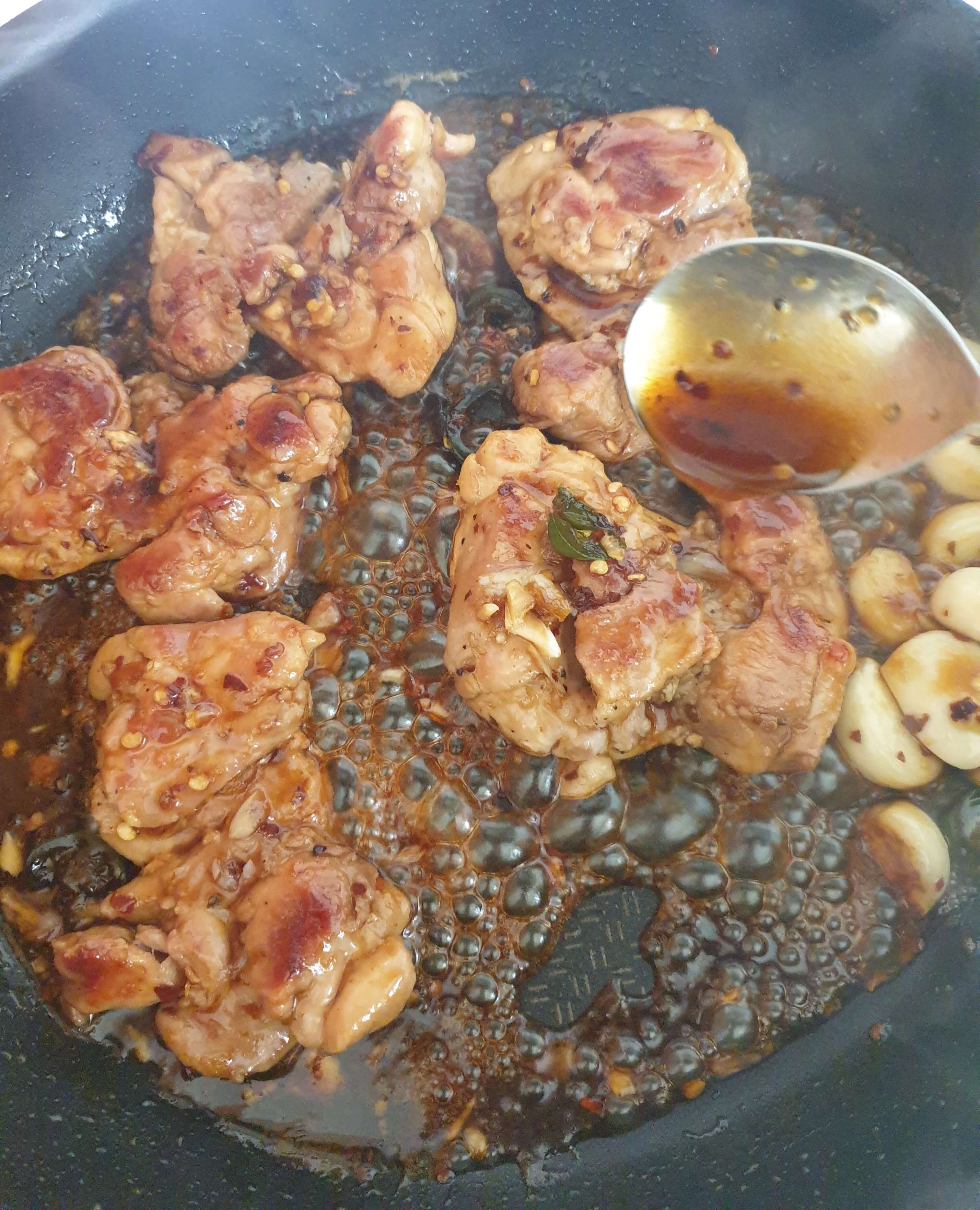 중. 강불에서 소스를 끼얹어 가며 조려주고
