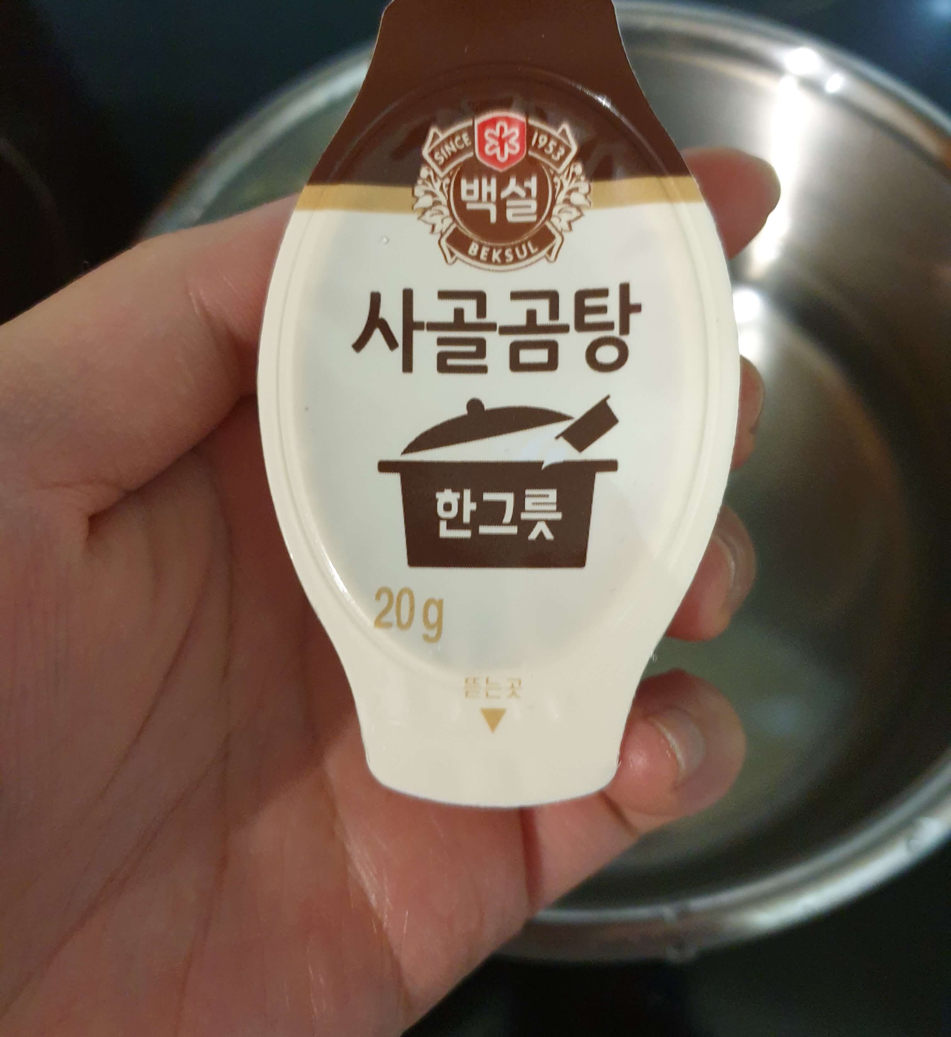 사진에 보이는 백설 사골곰탕 한 개를 넣어줬어요.