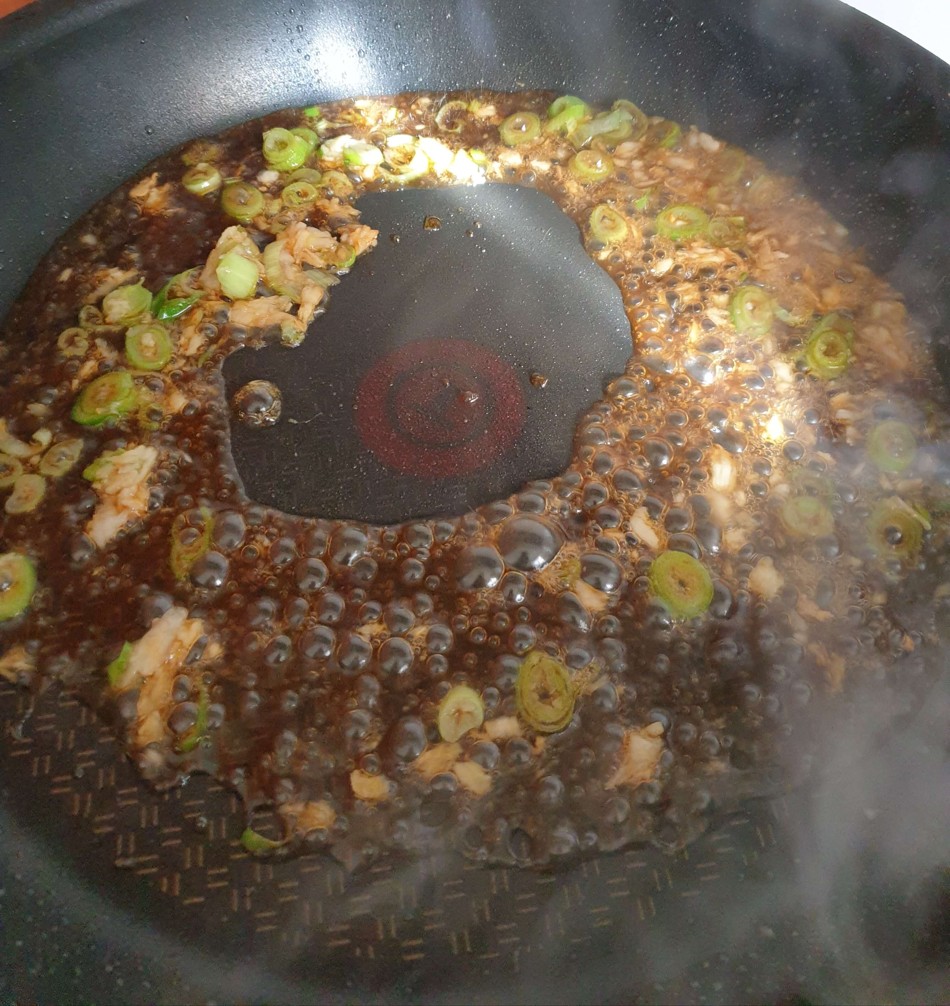소스가 바글바글 끓으면서