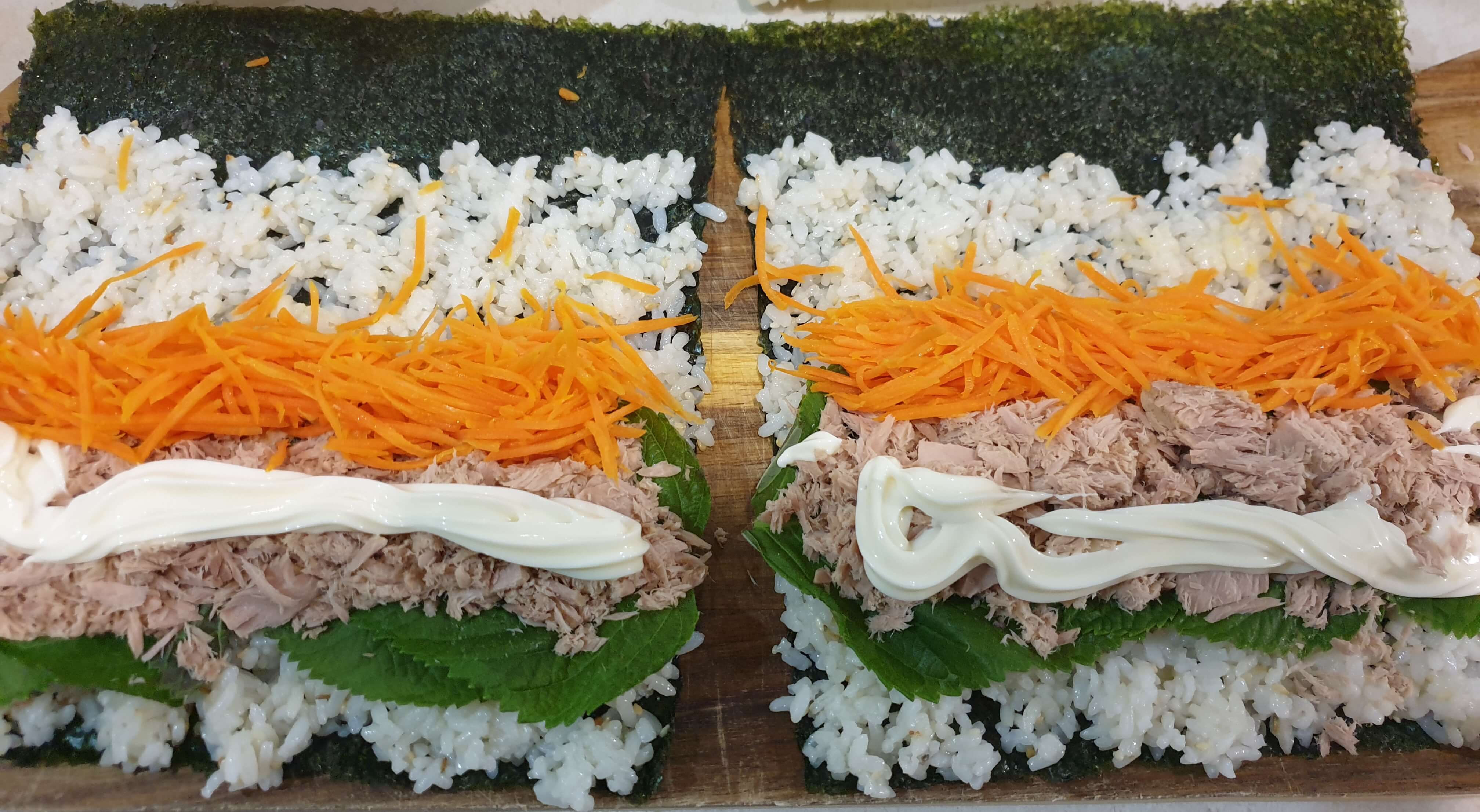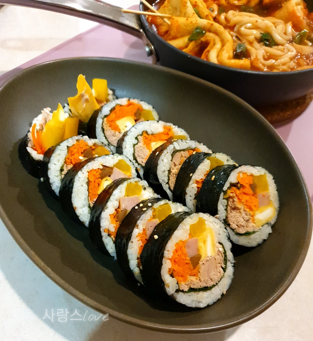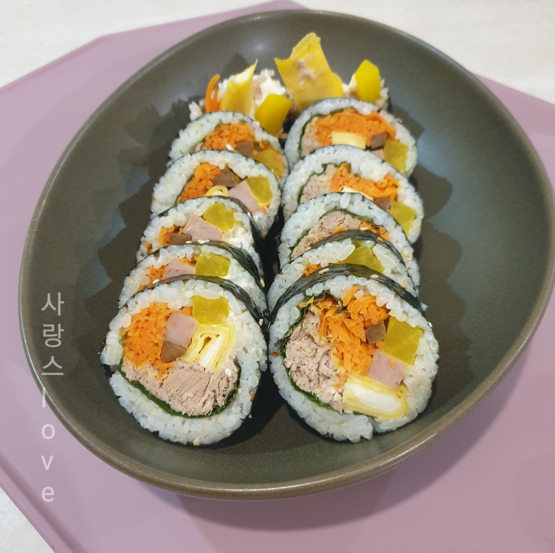 오랜만에 집에서 참치김밥을 직접 말았어요.