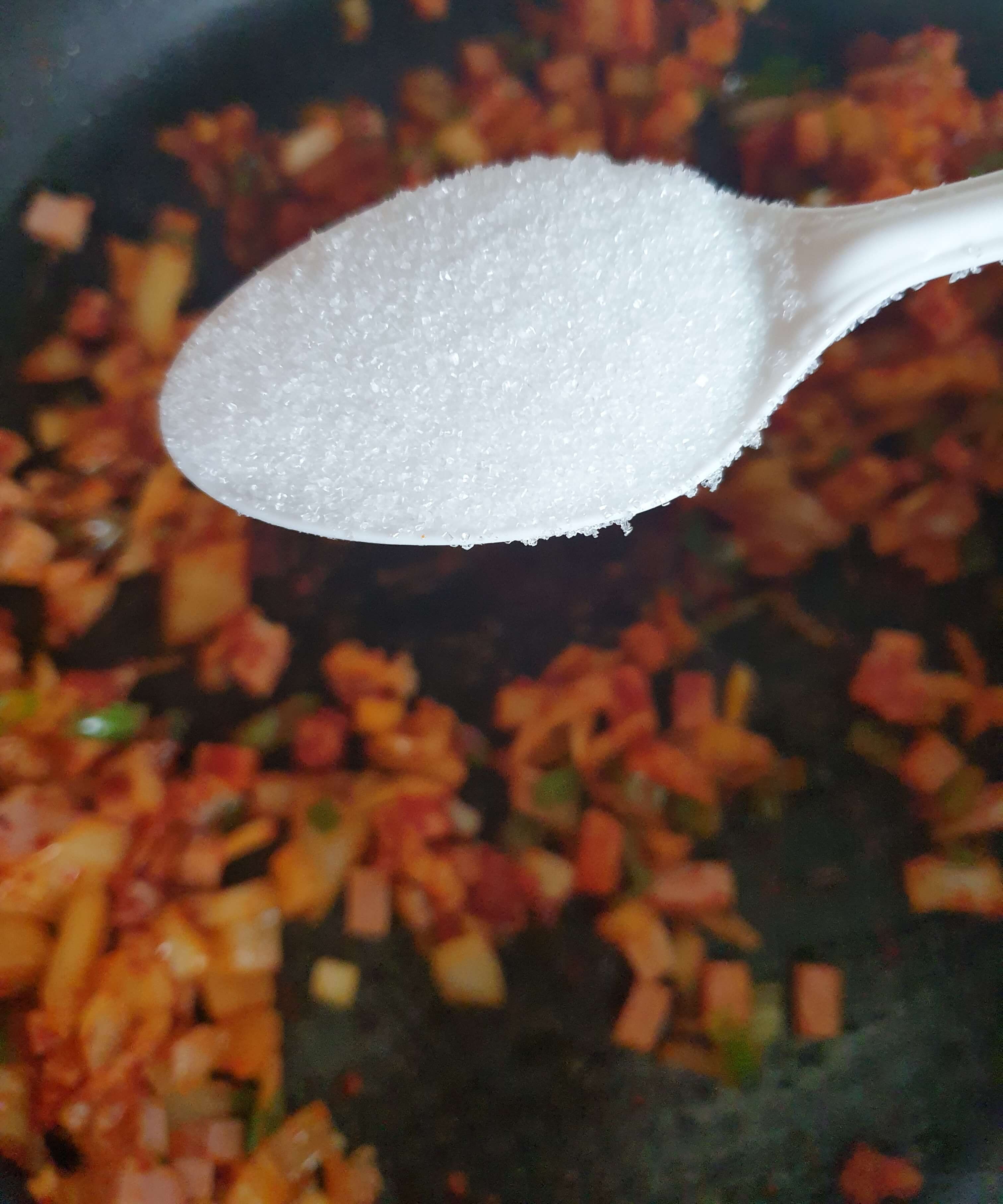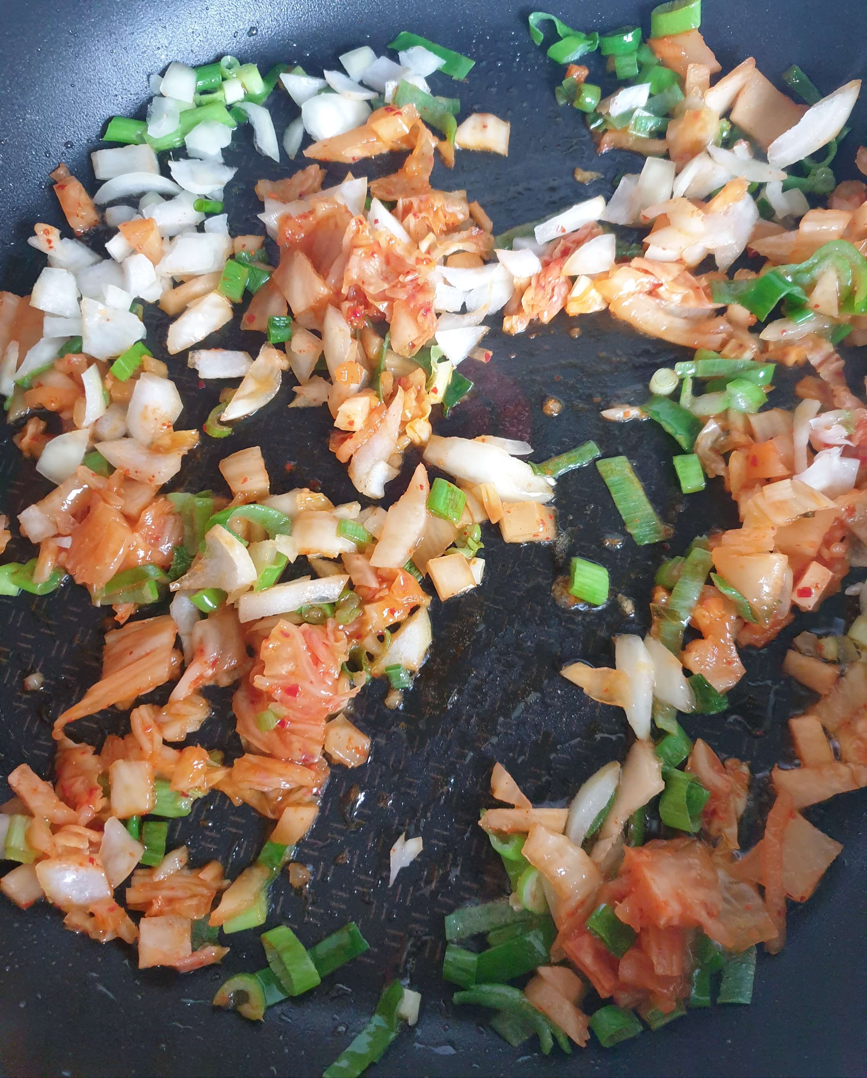 김치를 원래 레시피보다 훨씬 덜 넣어서