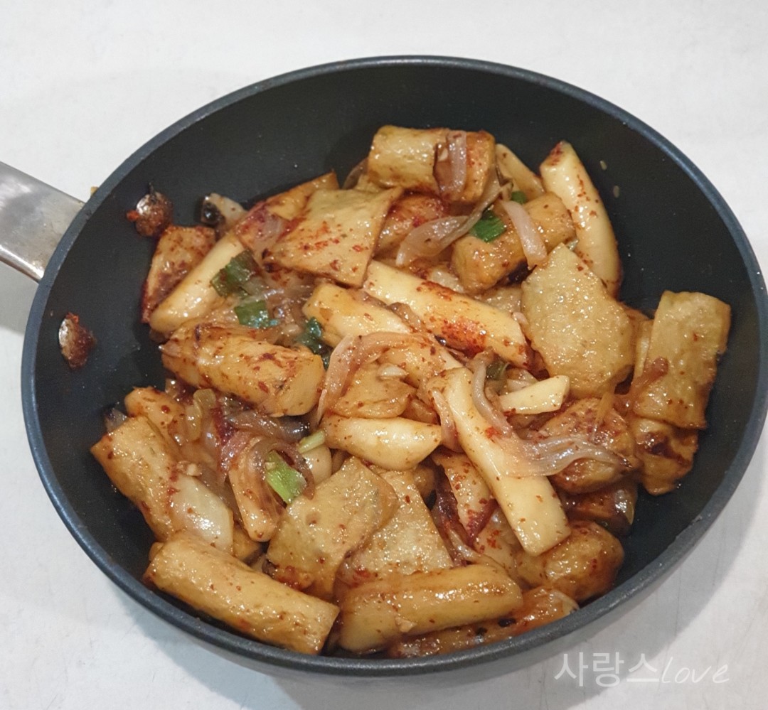 물기 뺀 어묵과 떡도 팬에 넣어줍니다.