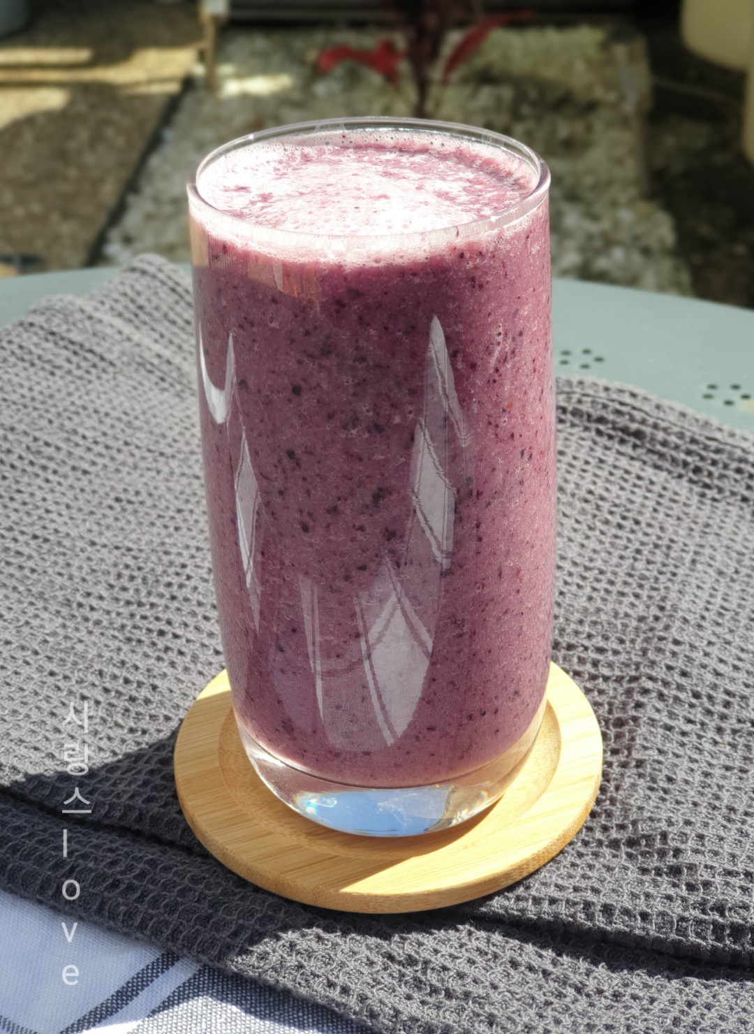 블루베리 바나나 스무디로 만들어 줘봤어요.