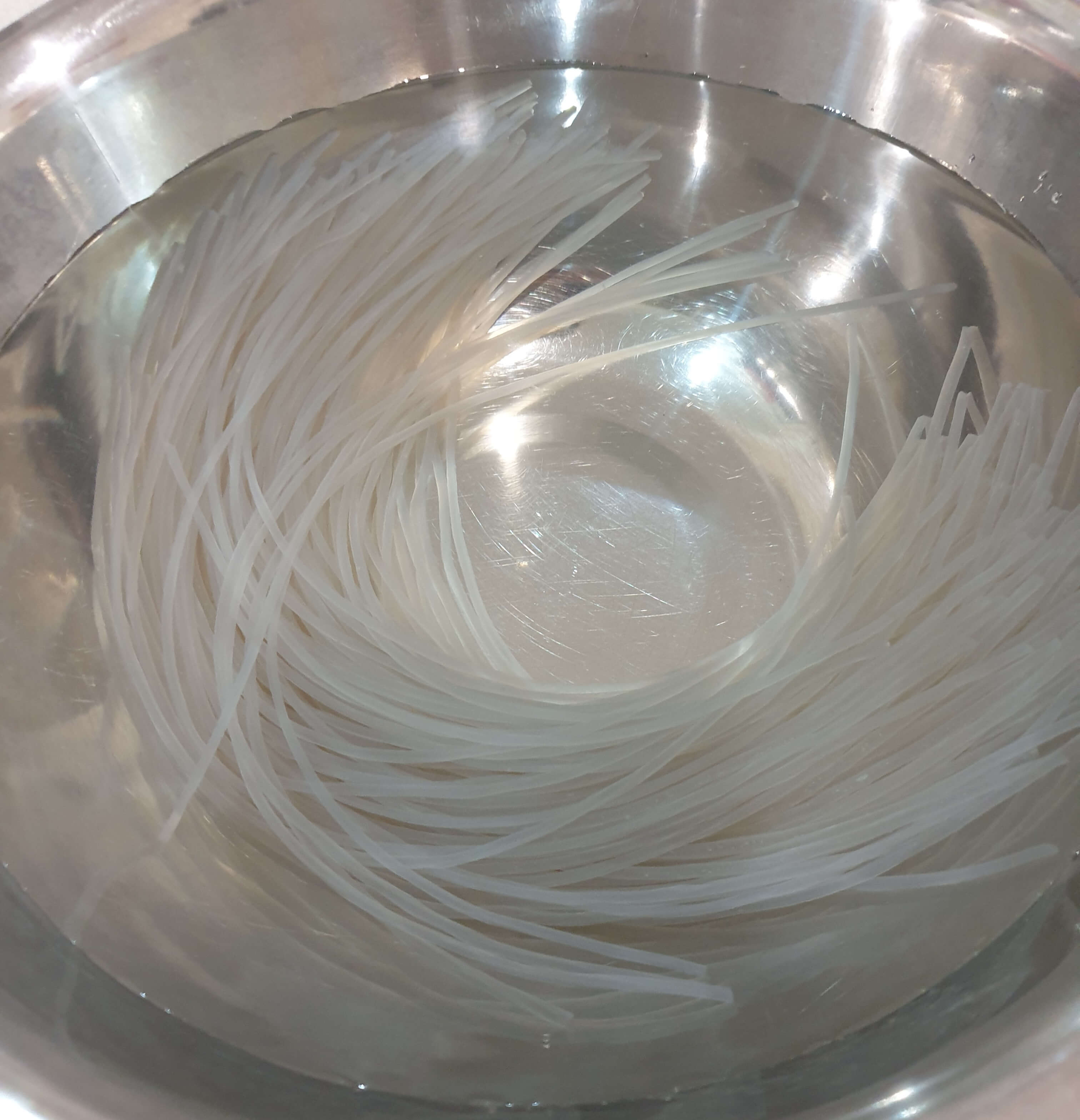 당면 한 줌을 물에 30분 이상 불려주세요.