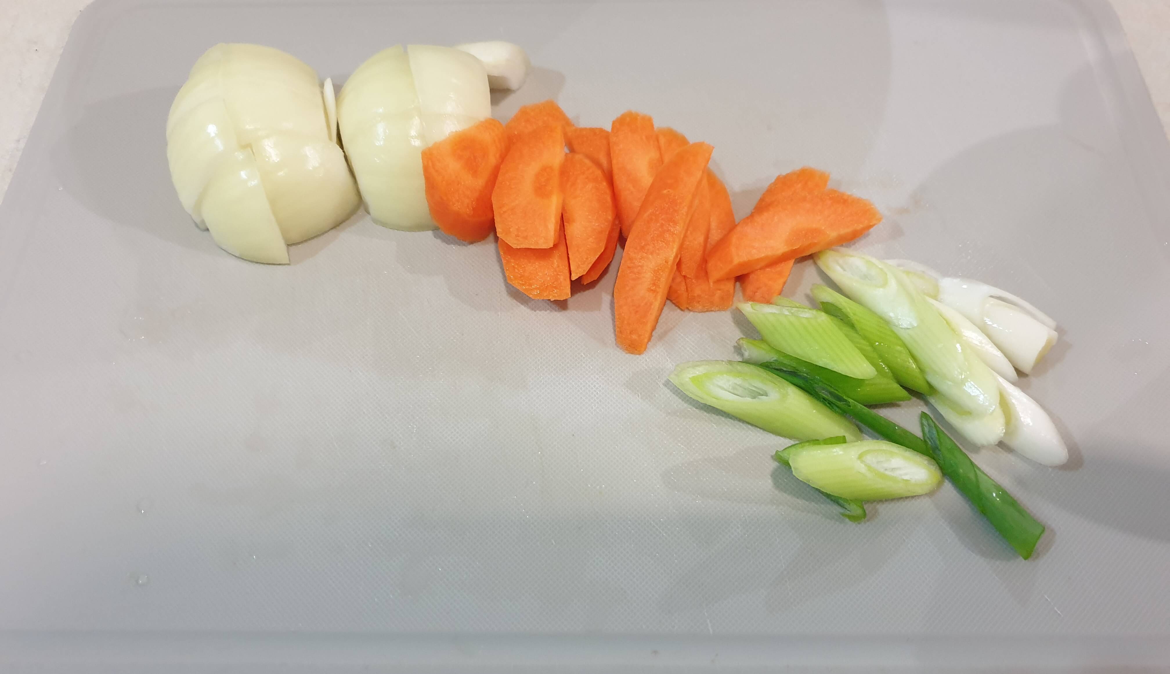 당근, 대파를 색감 내기 좋게 썰어줍니다.