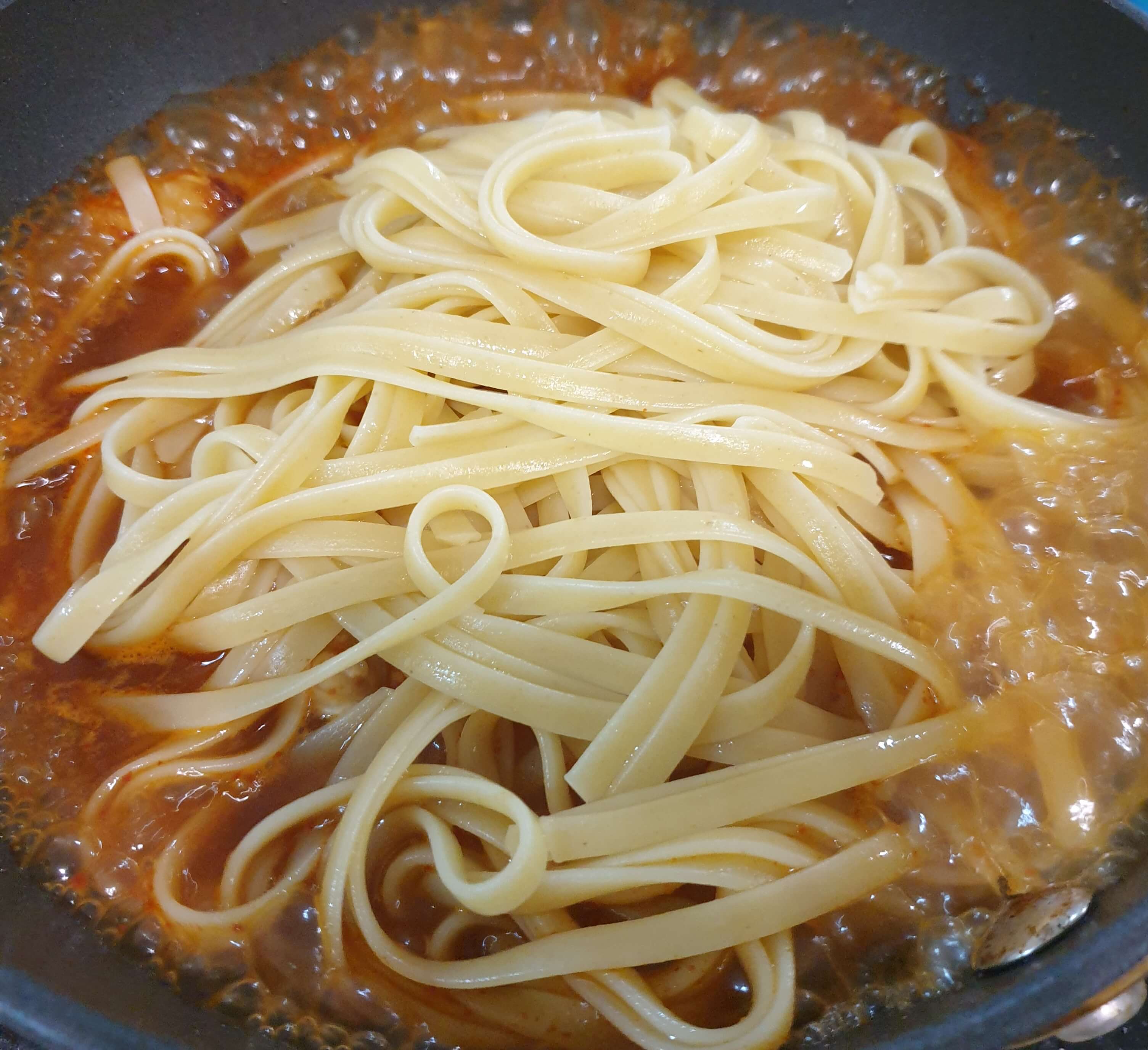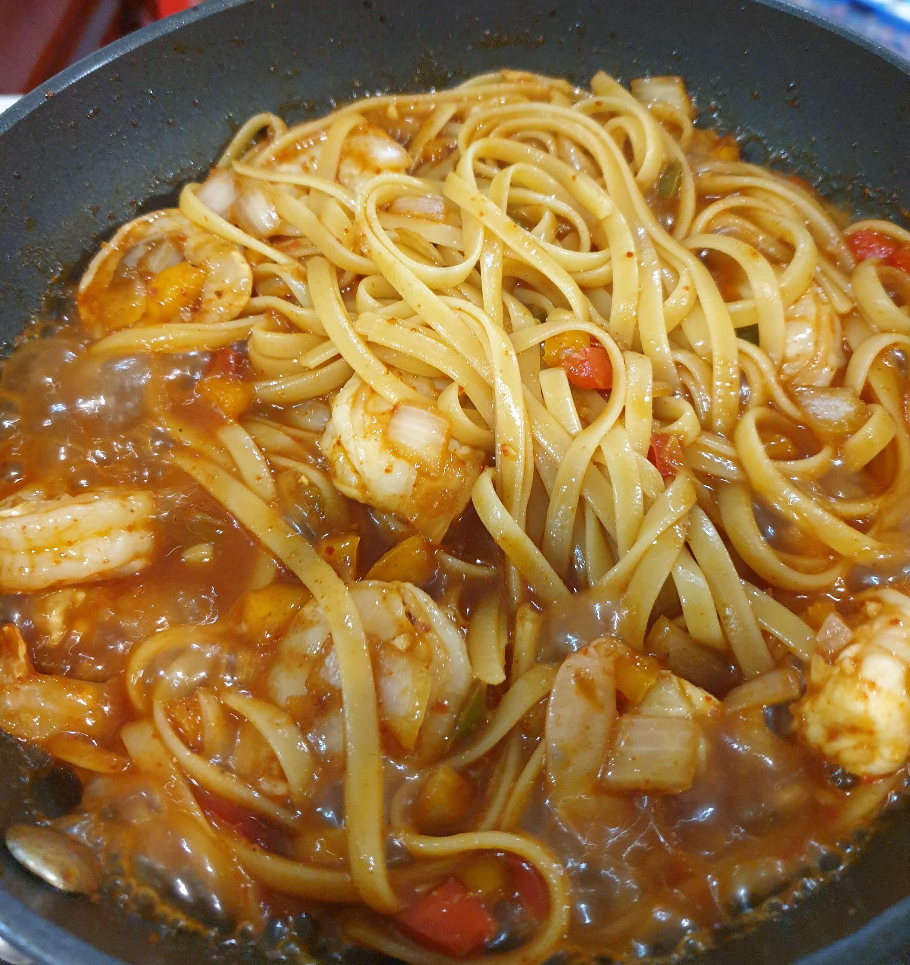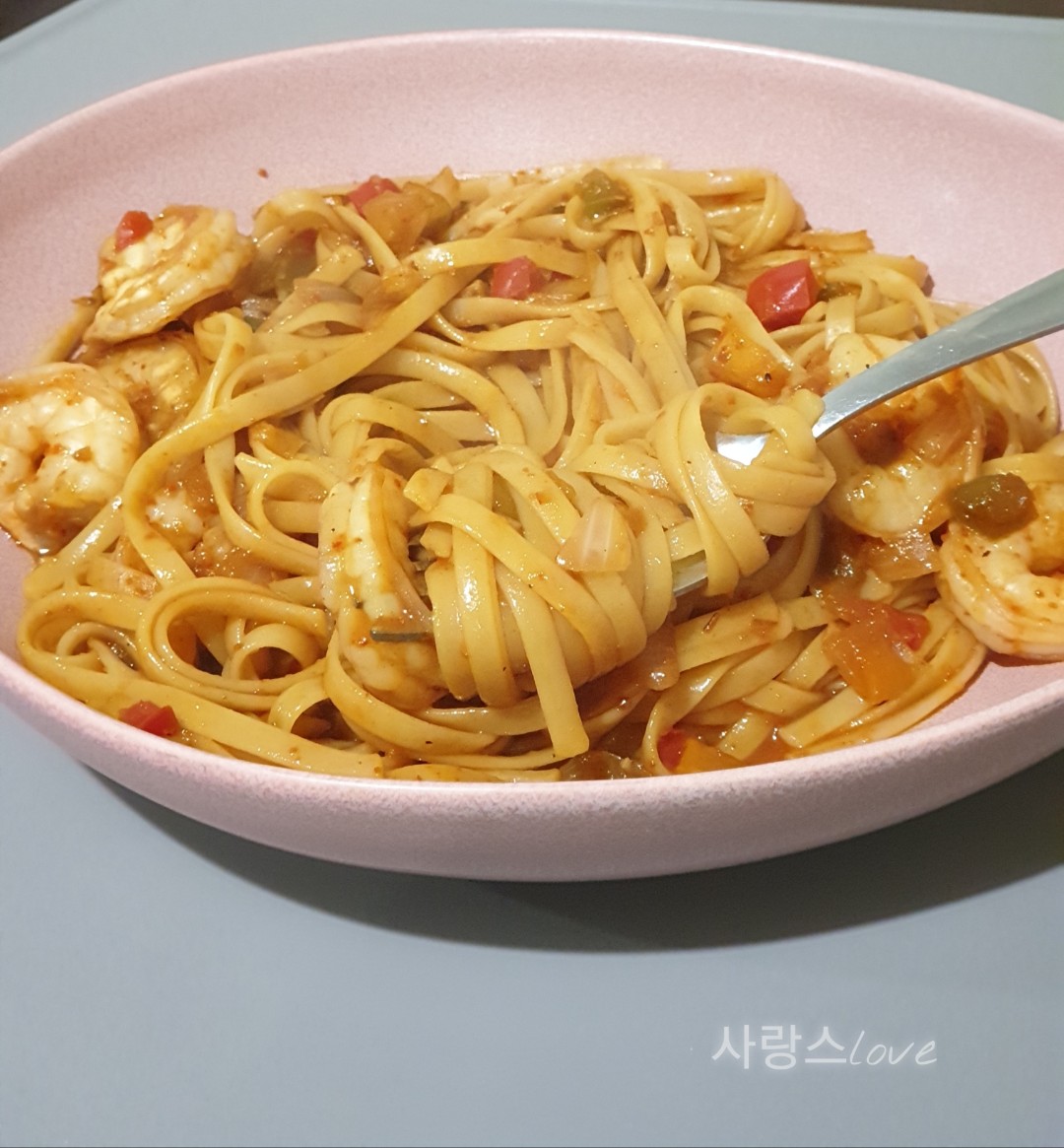 파스타면과 칠리새우의 조합이