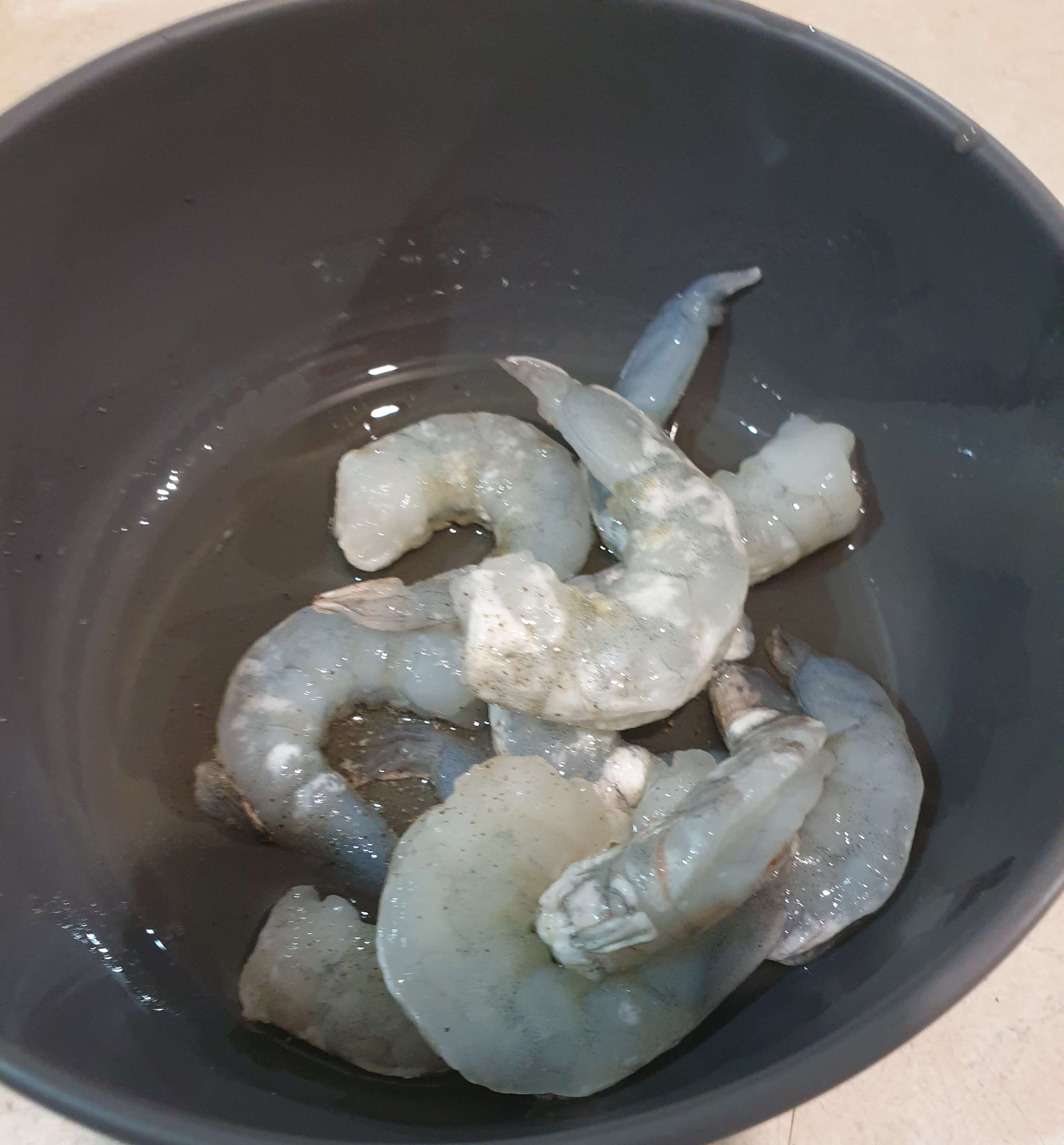 냉동 새우 8~10마리를 해동한 후