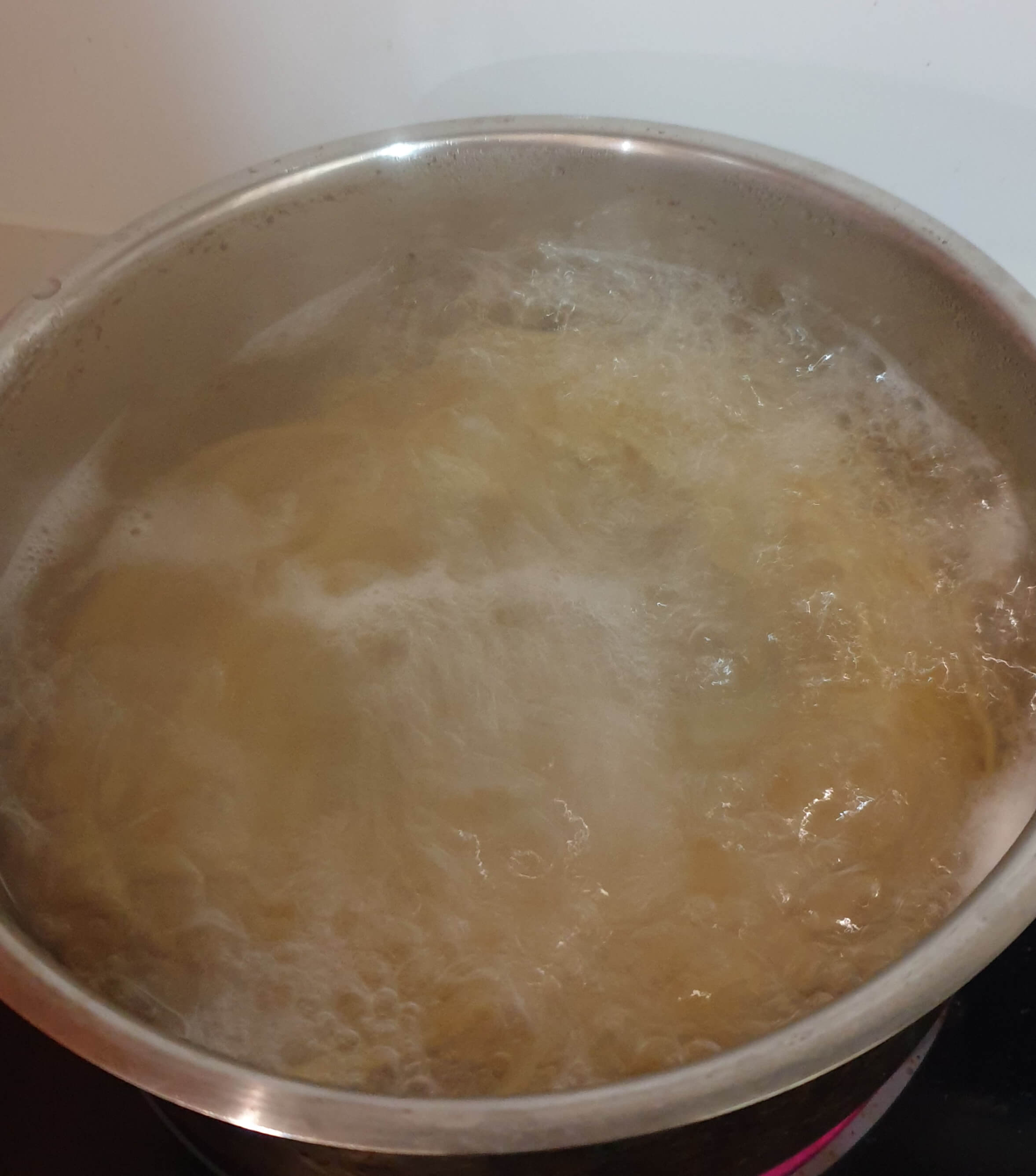 파스타면 100g을 넣고 삶아주세요.