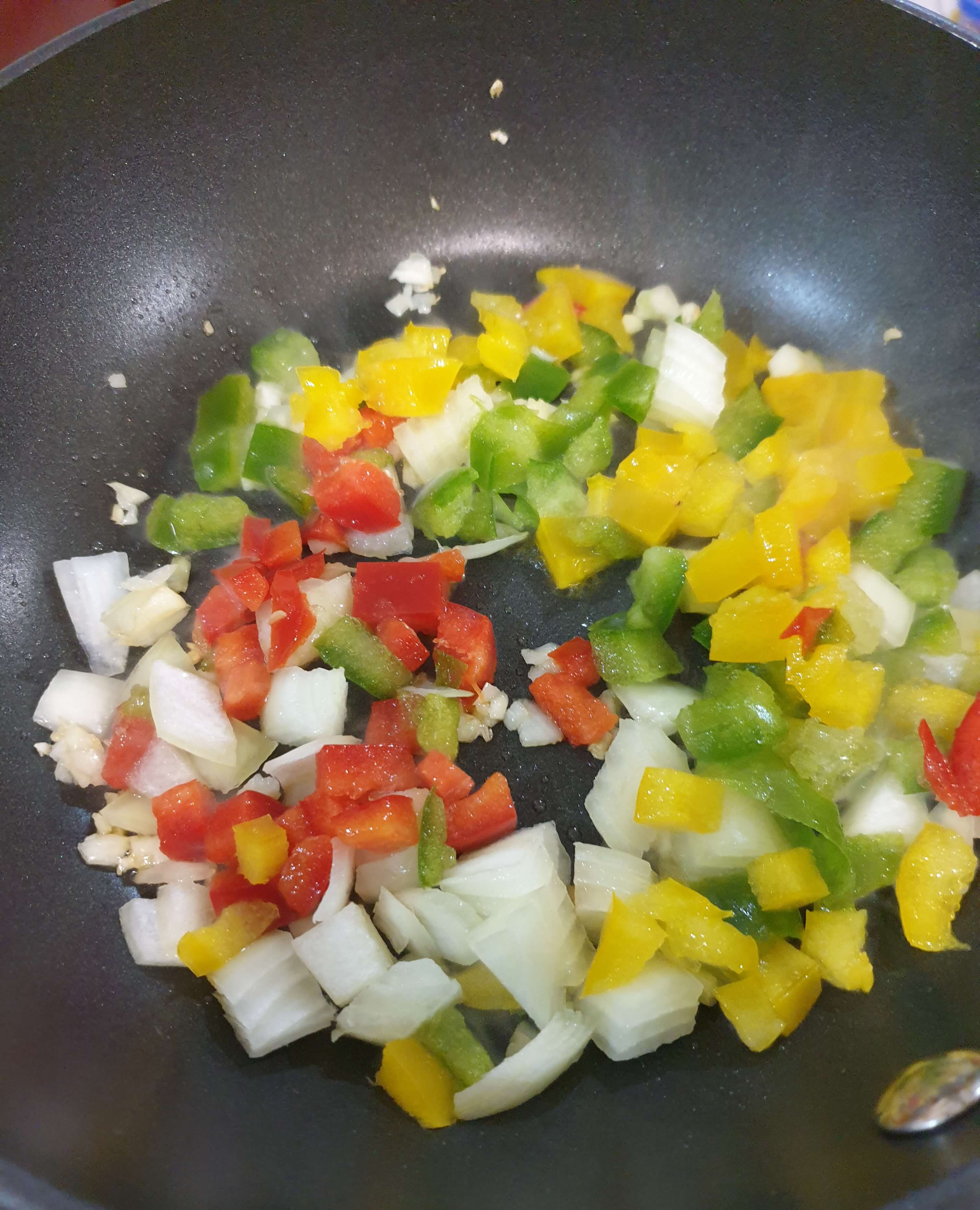 파프리카 약간씩을 작게 썰어 준비했어요.