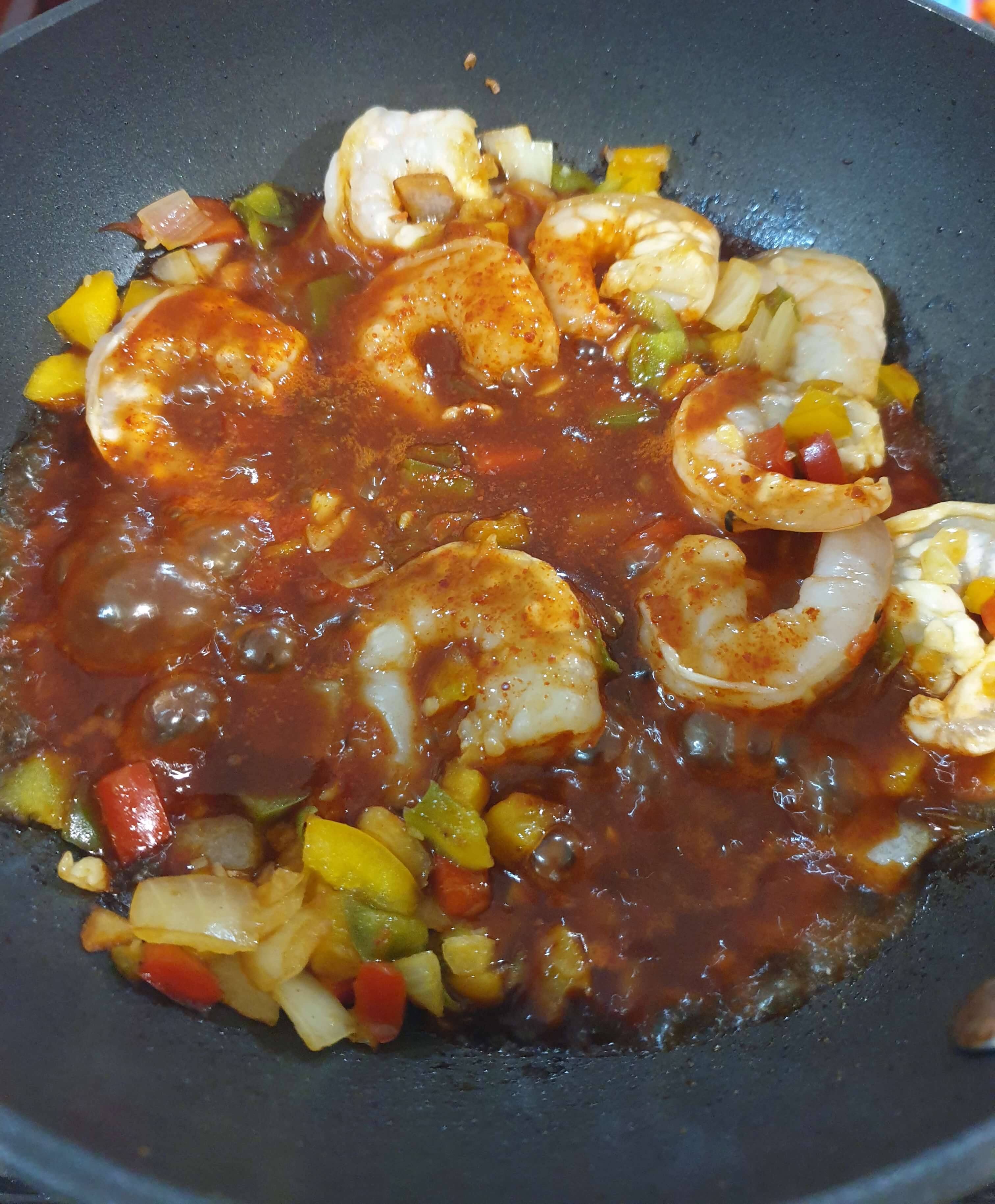 칠리새우 소스를 올려서