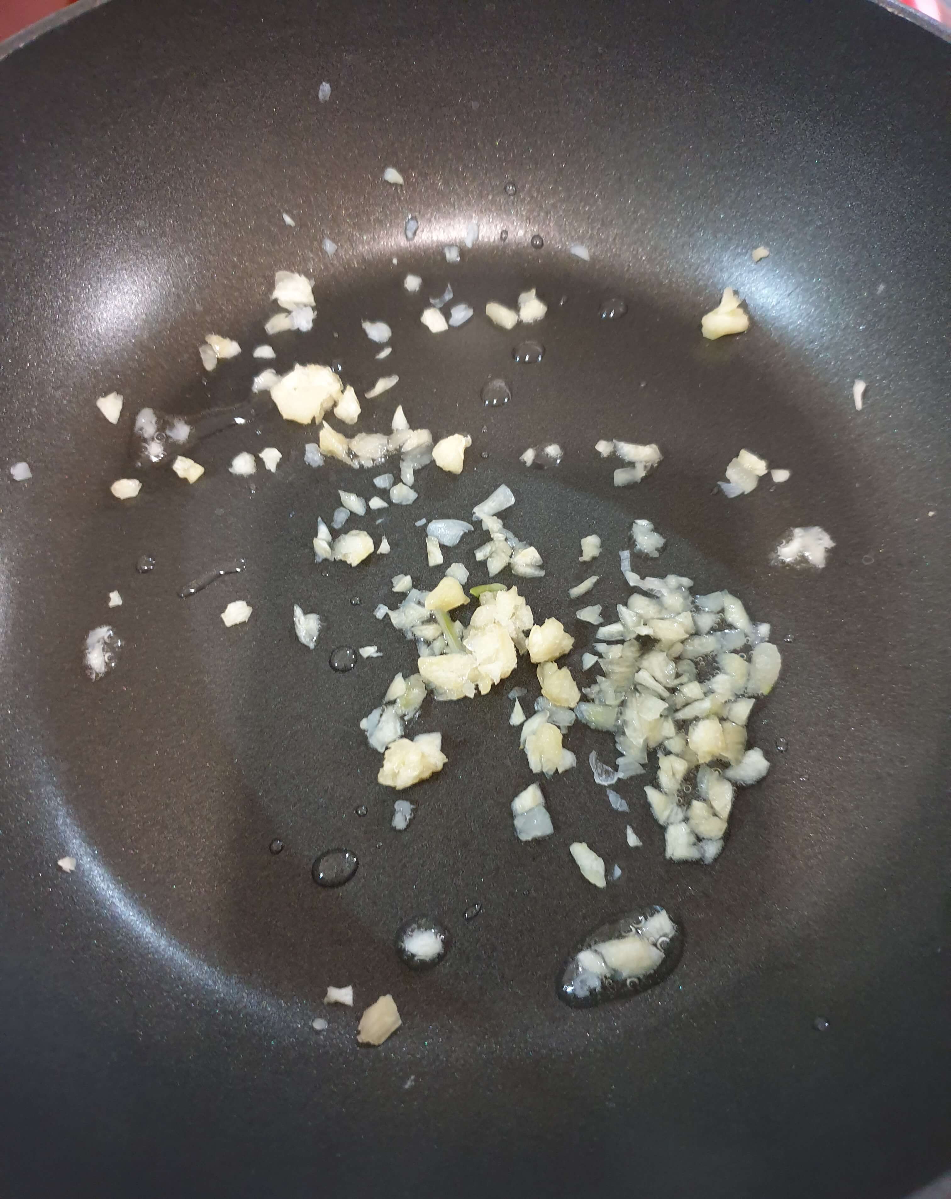약불에서 다진 마늘 1/2큰술을 볶아주세요.