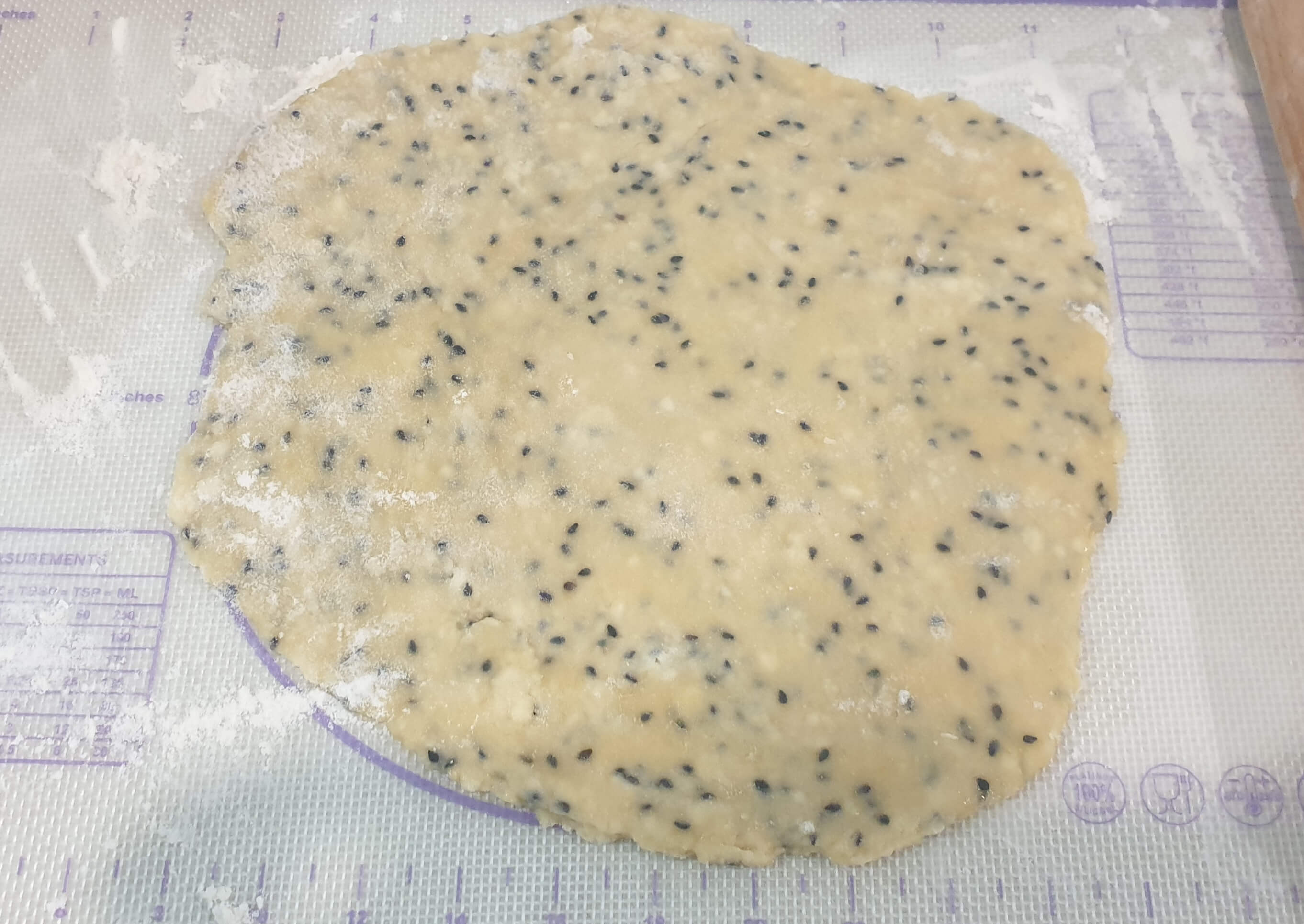밀대를 이용해 반죽을 얇게 펴주세요.