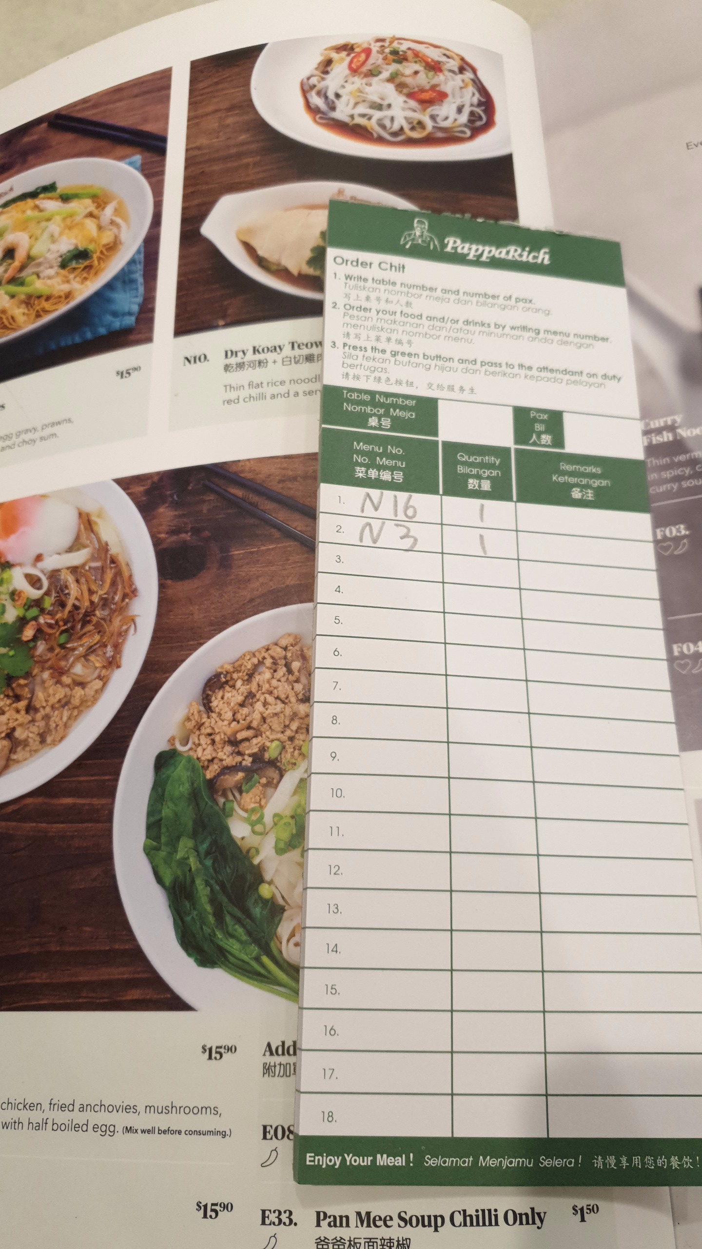 주문은 종이에 음식 번호와 주문 할 개수를 체크해서 주는 방식이에요