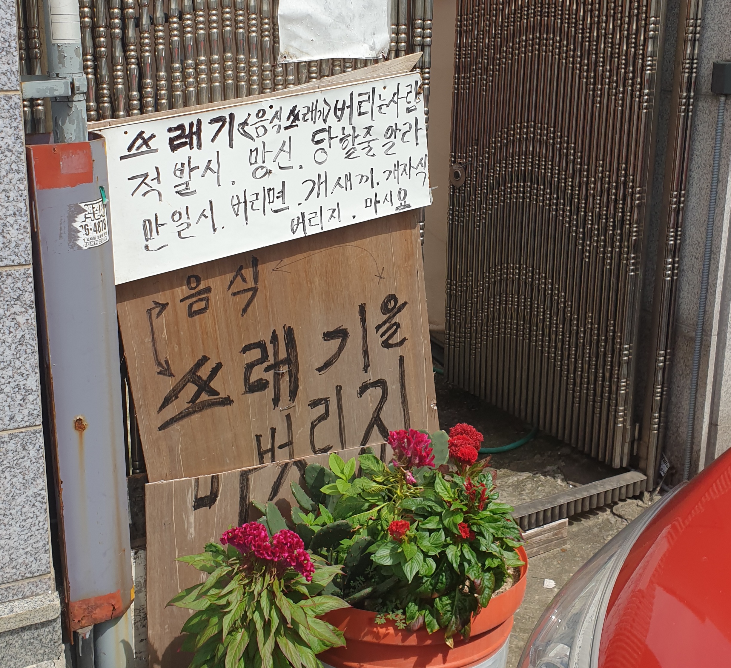 어느 양심 없는 인간들이 남의 집 앞에 음식 쓰레기를 버리는지...