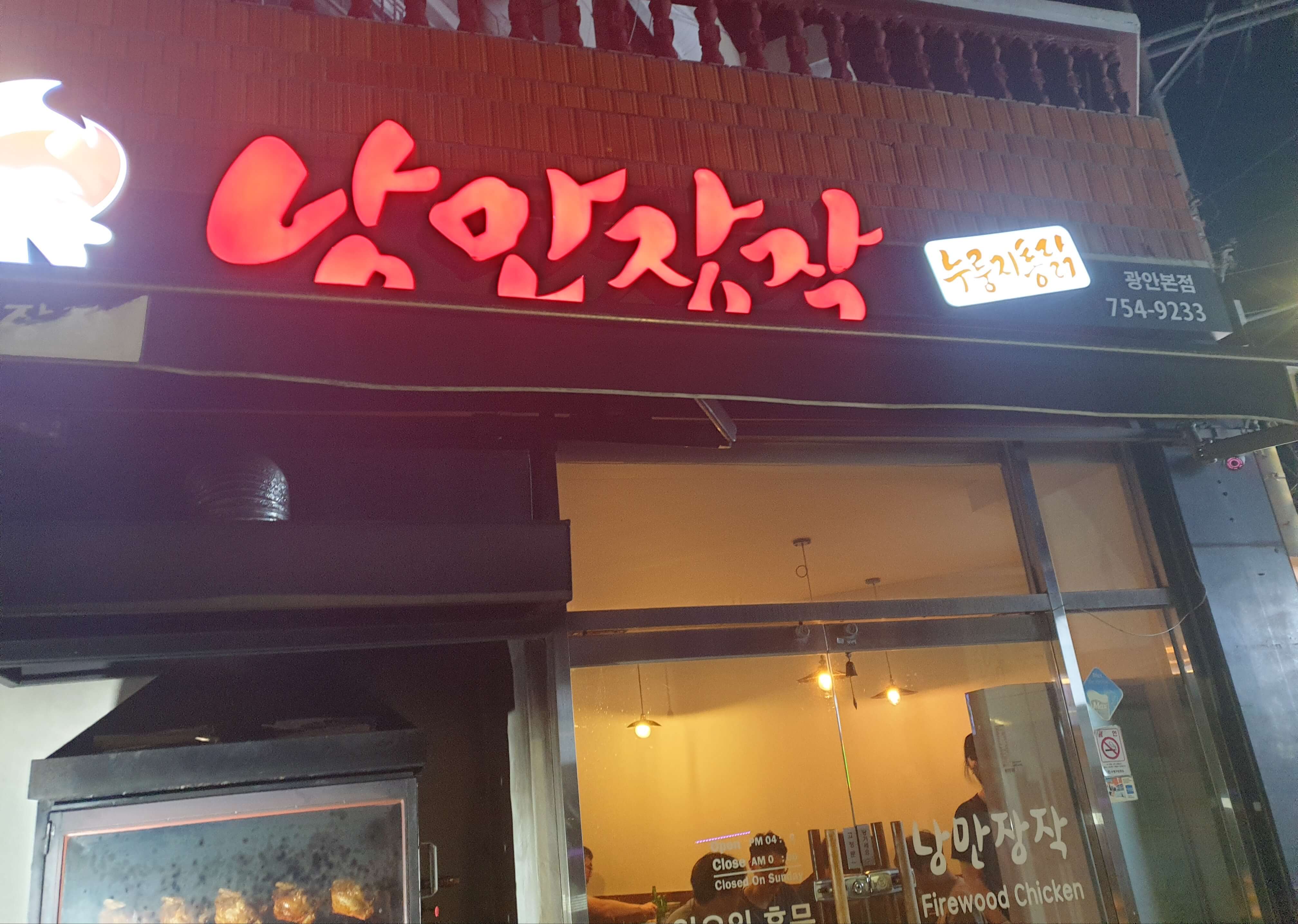 대한민국 부산광역시 수영구 무학로 10번 길 47에 있는 낭만 장작에 저녁을 먹으러 왔다.